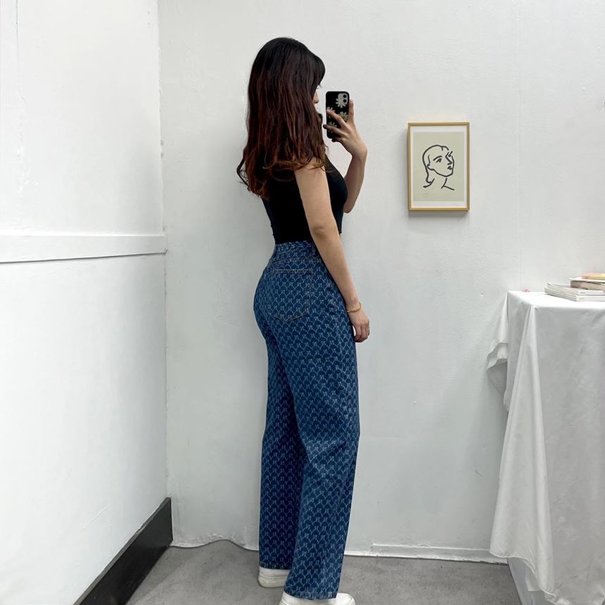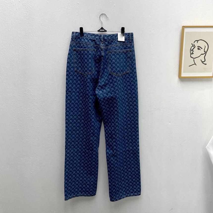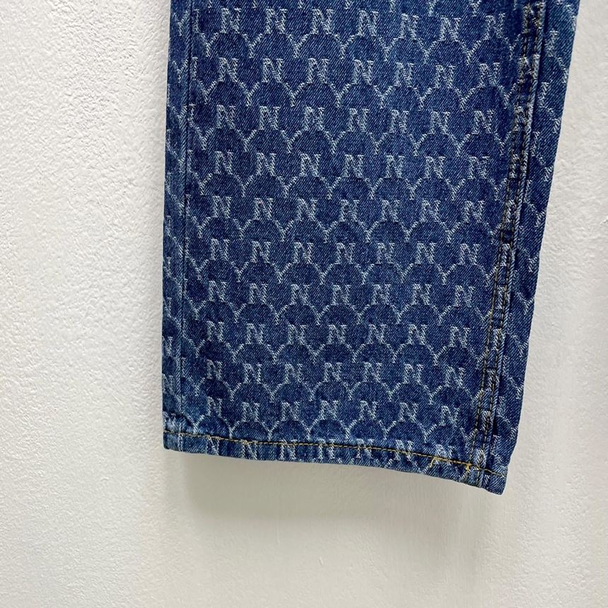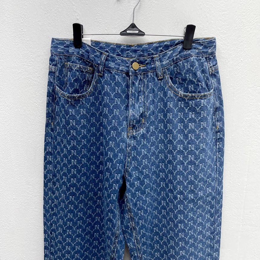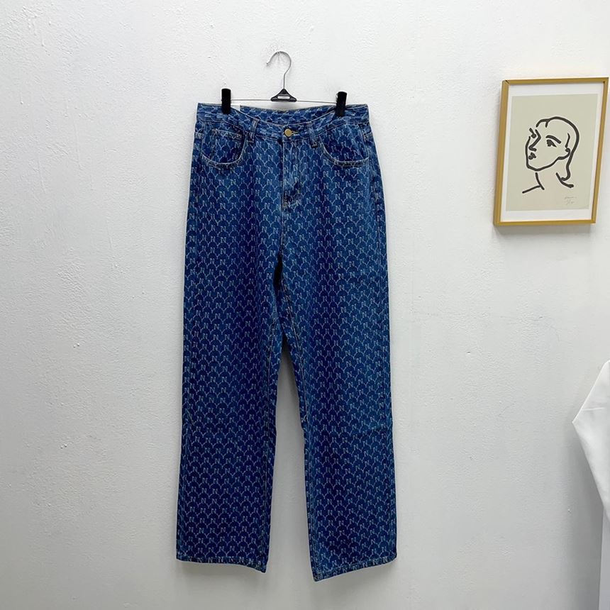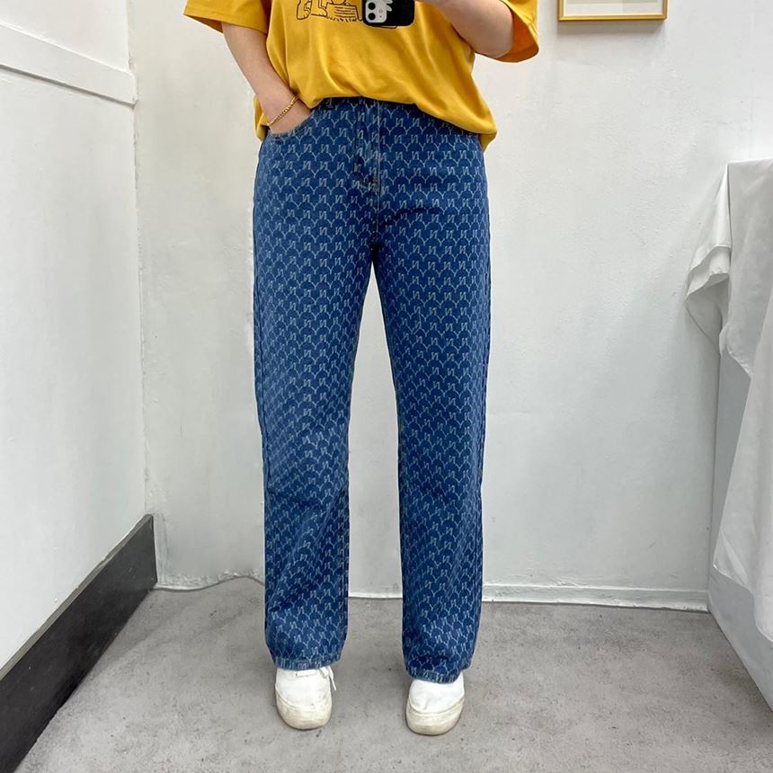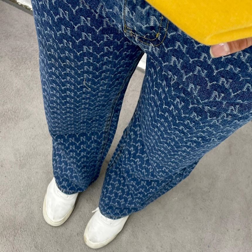 • 여성 NY 영문 프린팅 와이드 일자 청바지