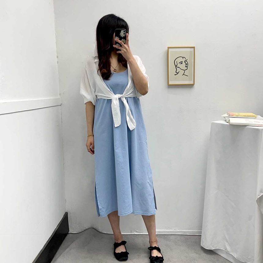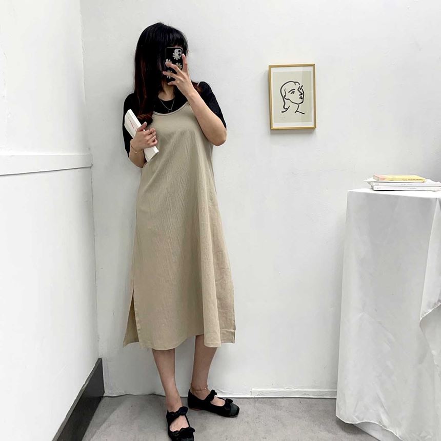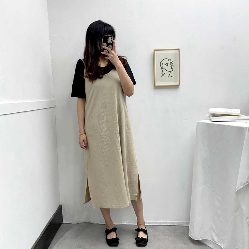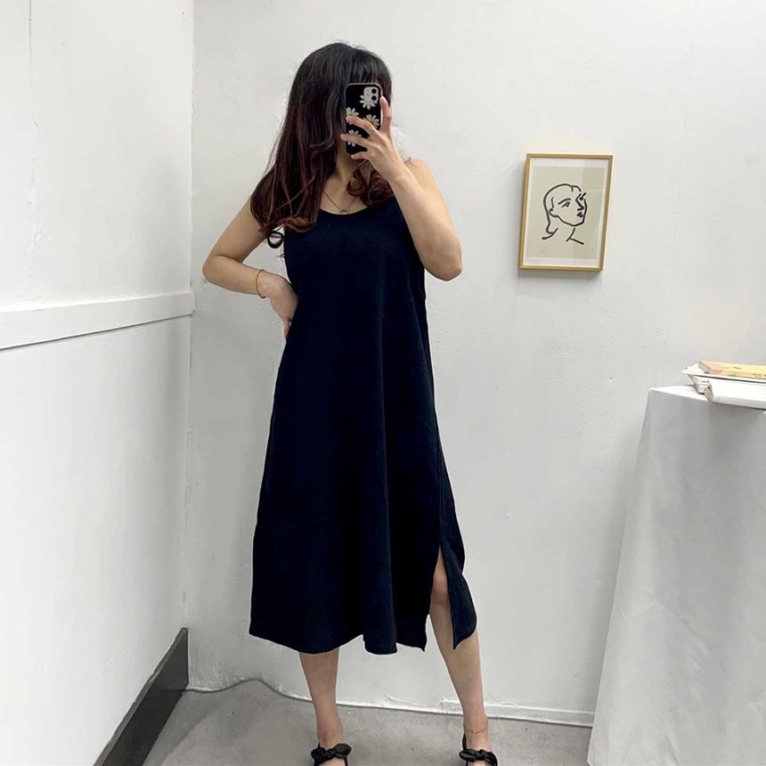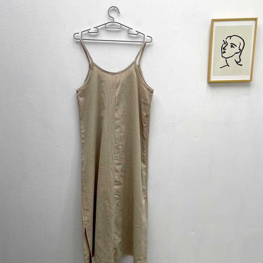 여름 린넨 뷔스티에 트임 롱 원피스