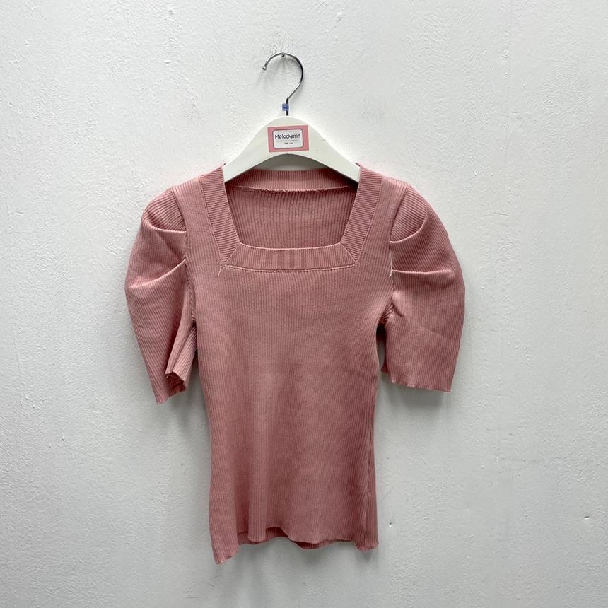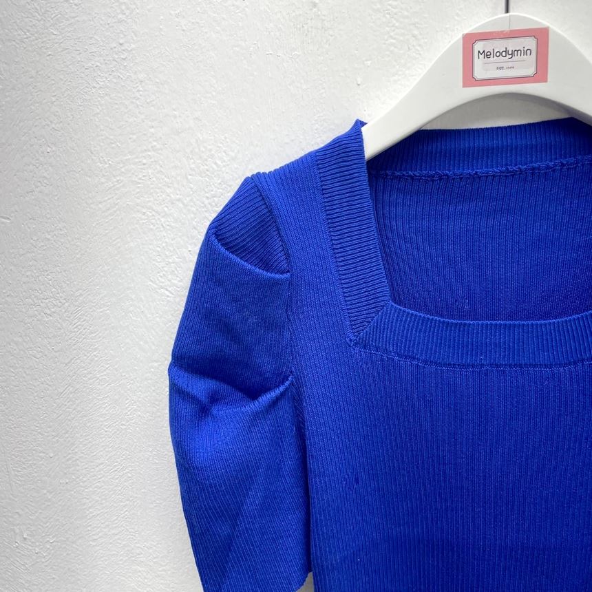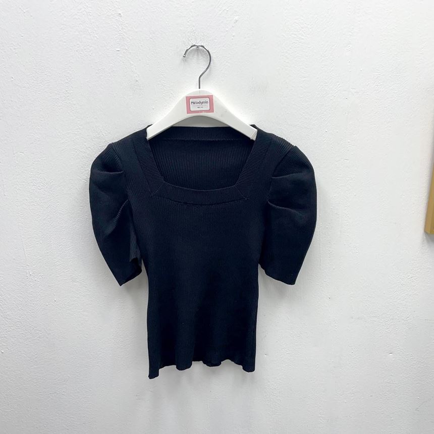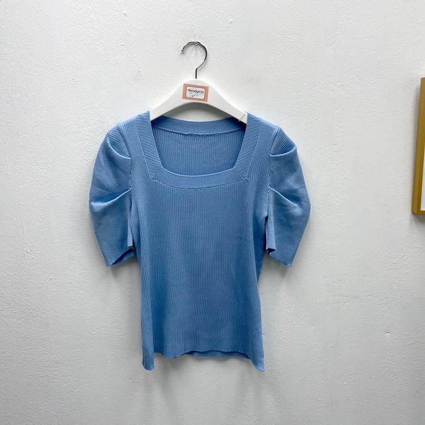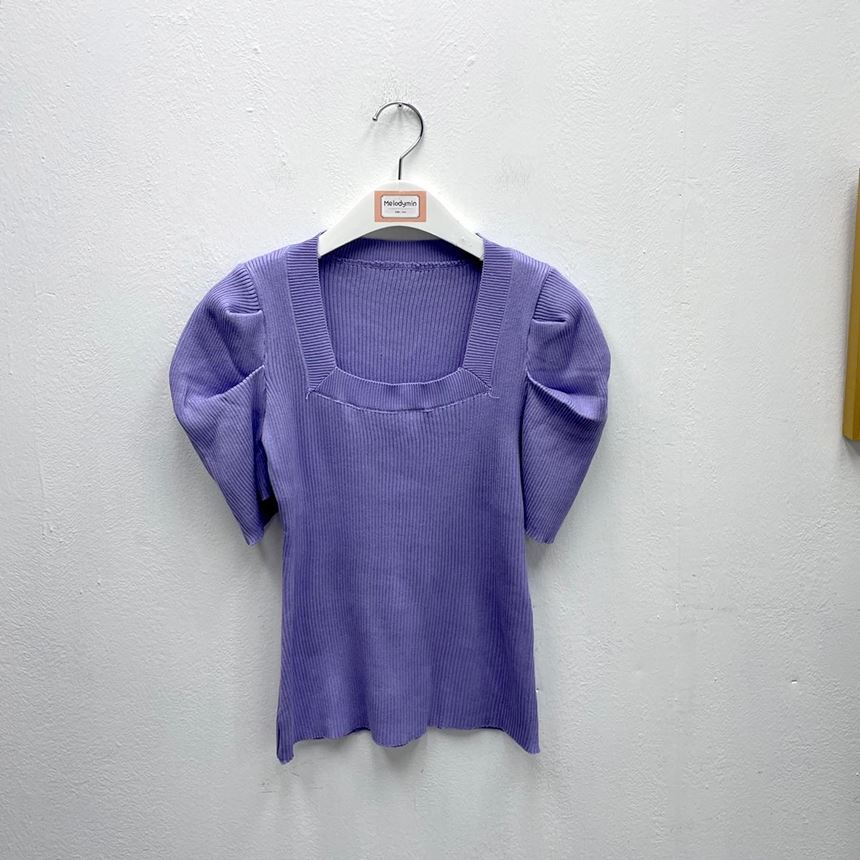 • 스퀘어넥라인의 골지 퍼프 니트에요
