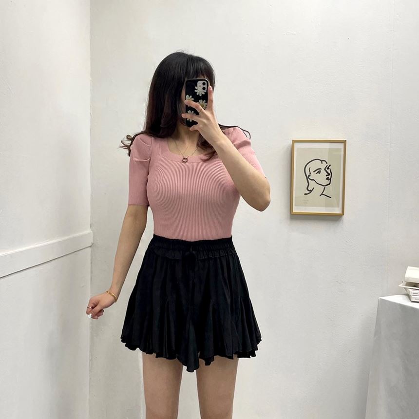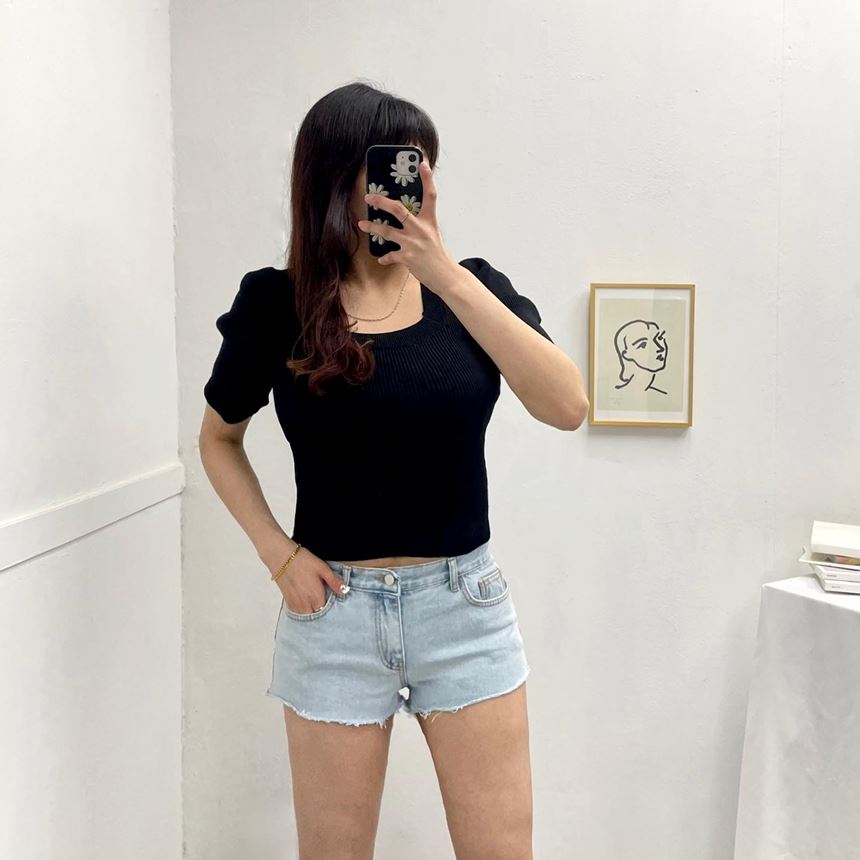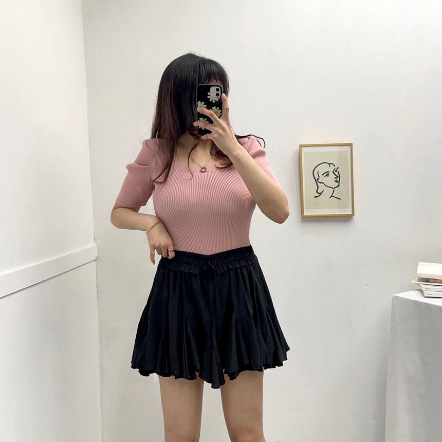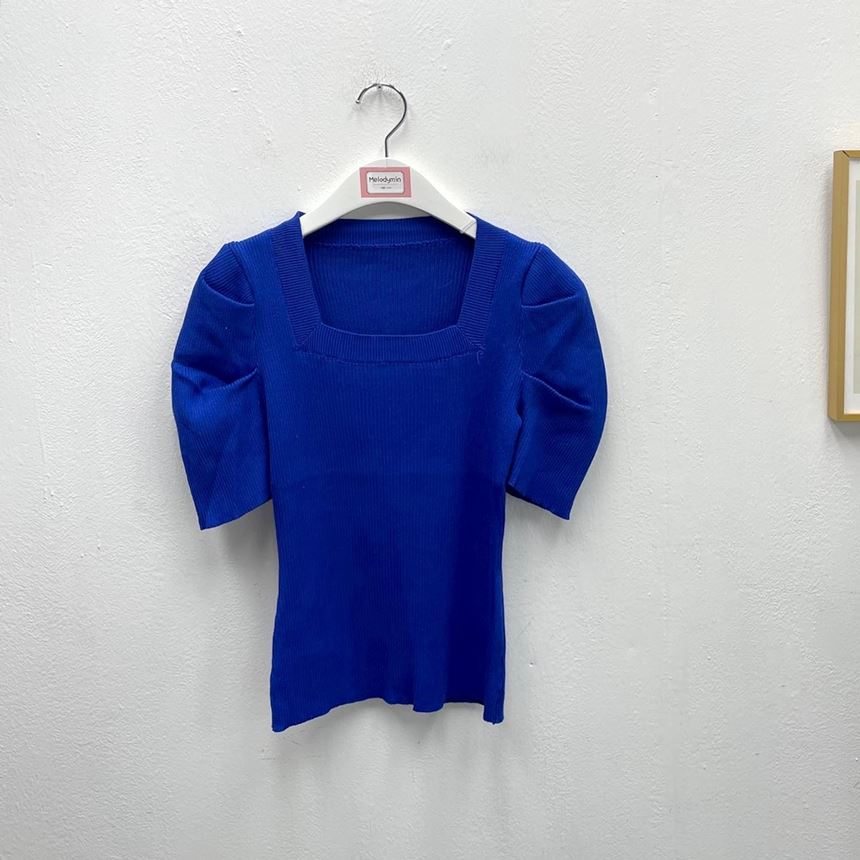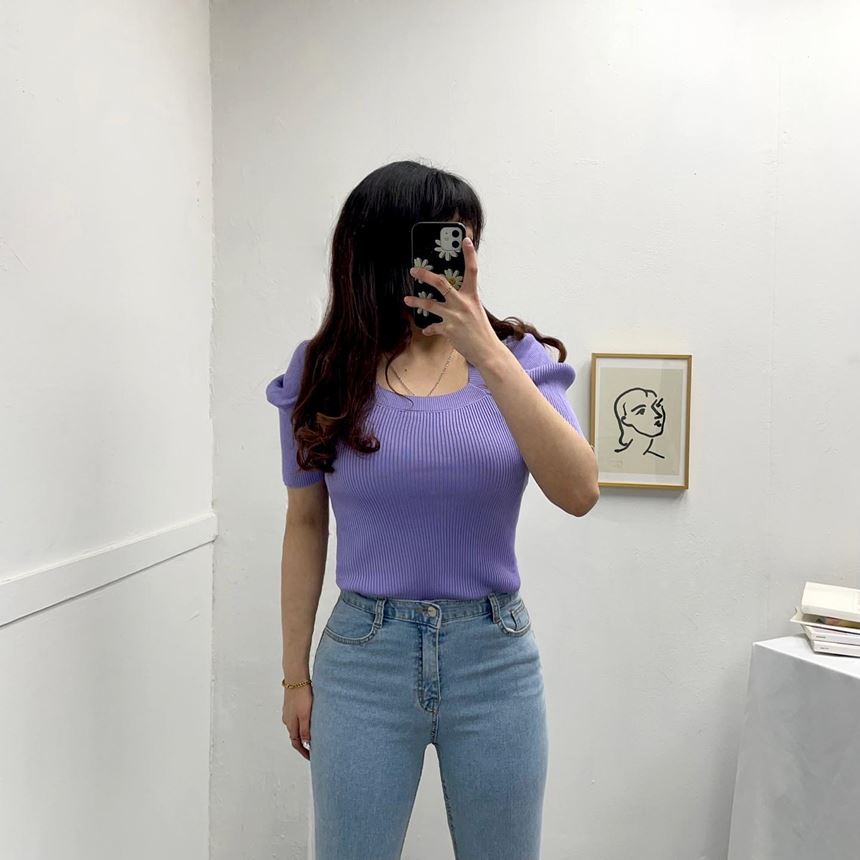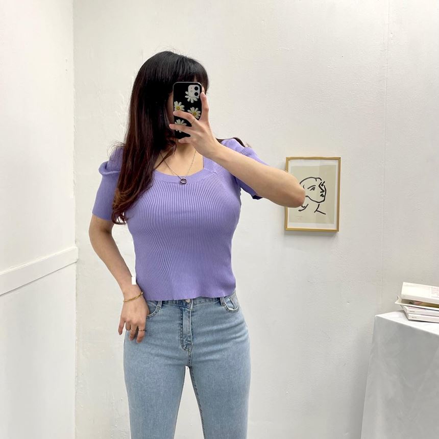 • 스퀘어넥라인의 골지 퍼프 니트에요