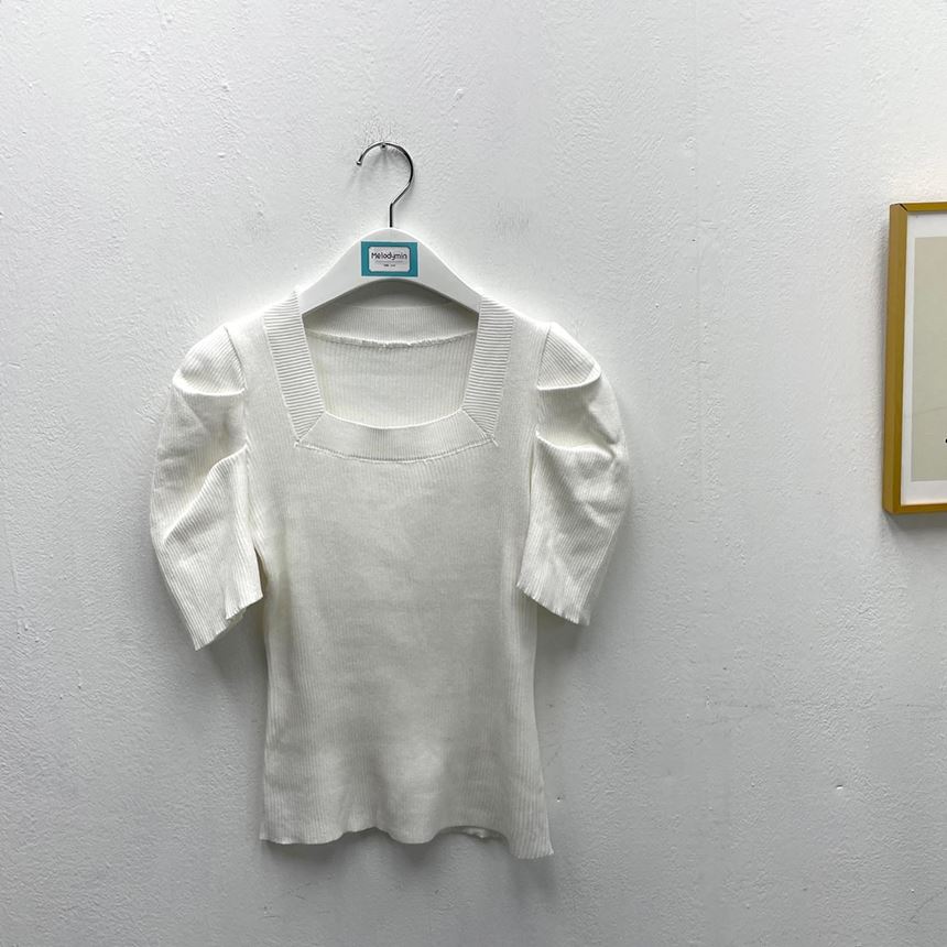 • 여성 반팔 스퀘어 퍼프 골지 니트