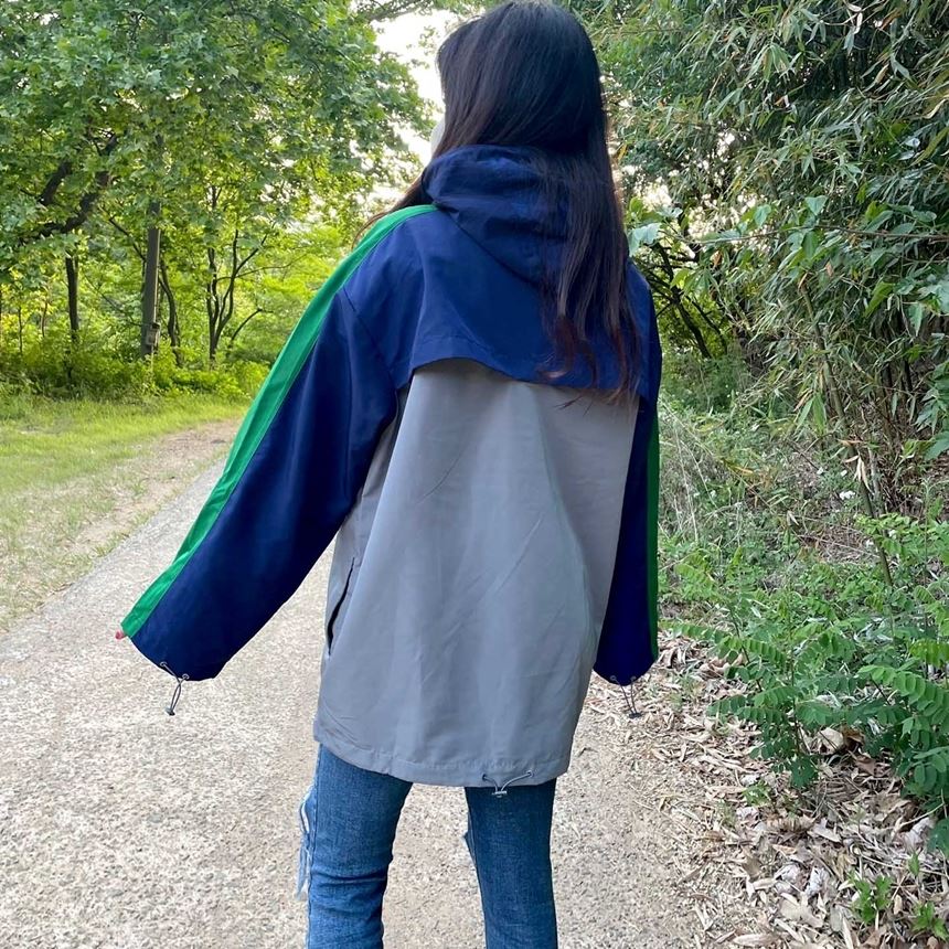 남녀공용 반집업 배색 아노락 바람막이 자켓