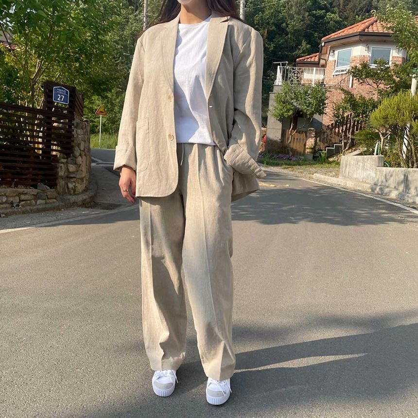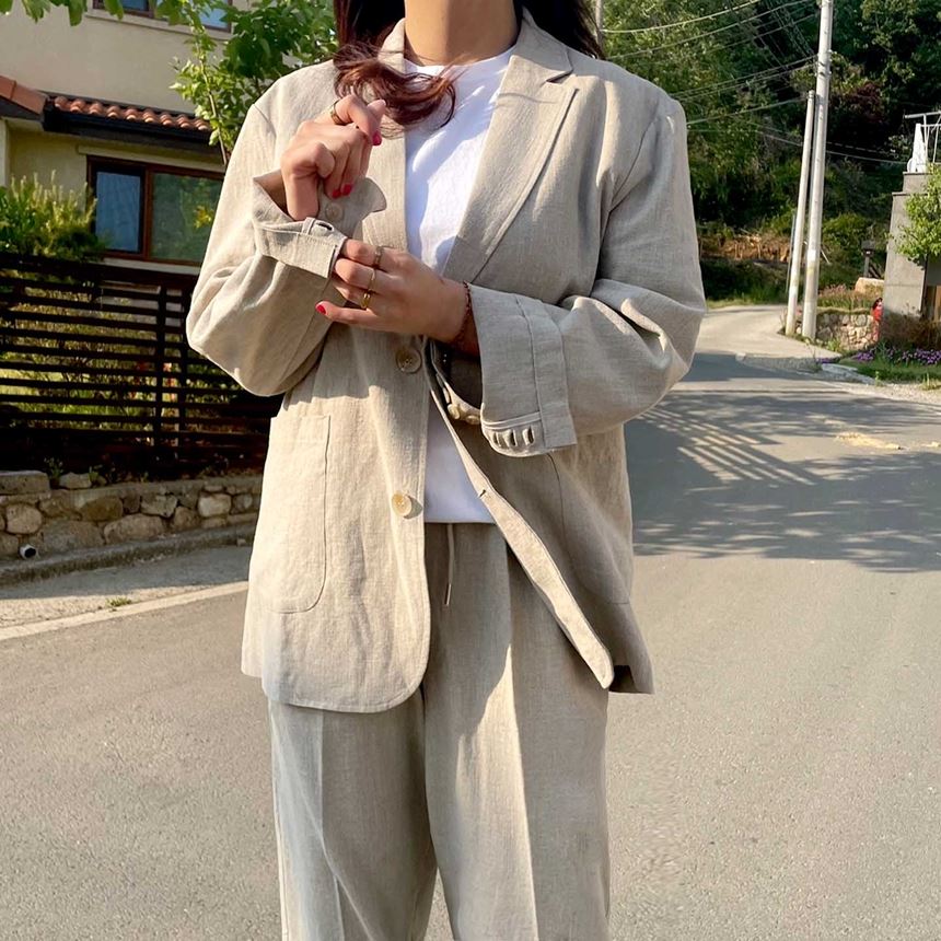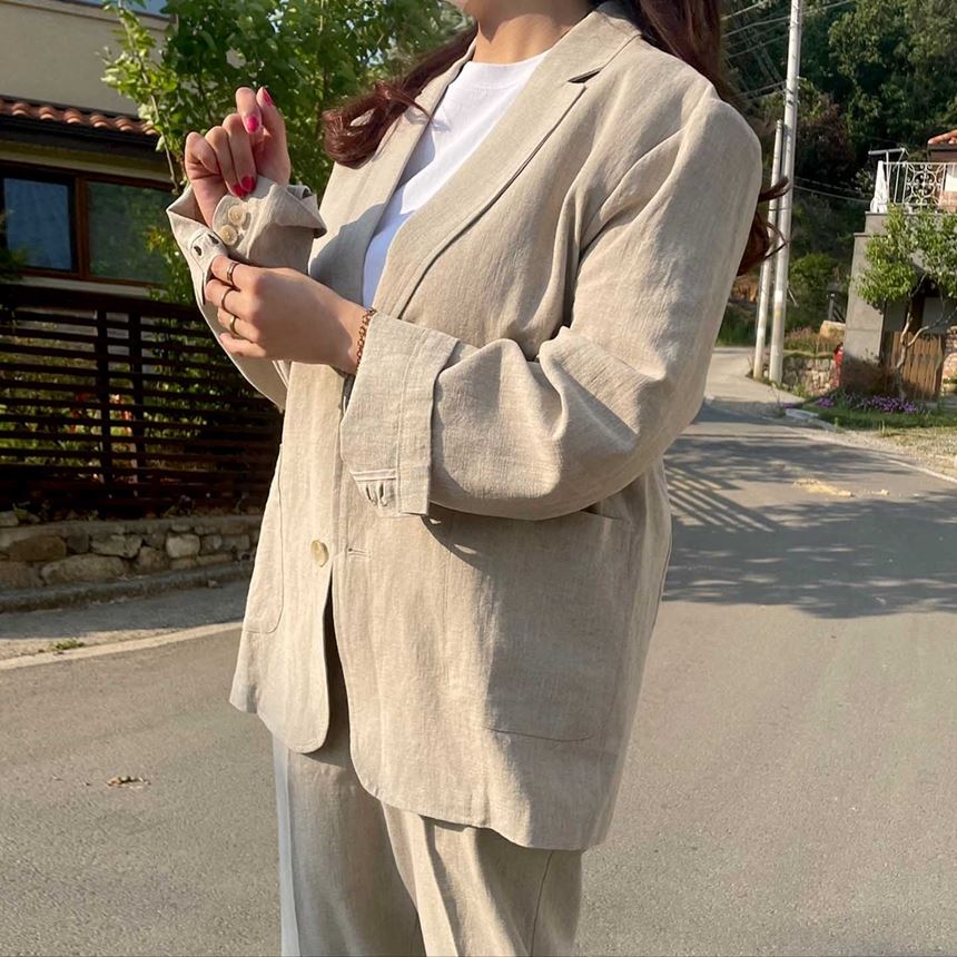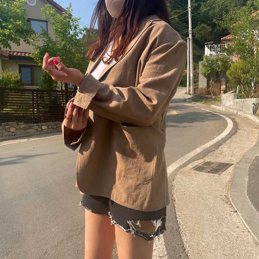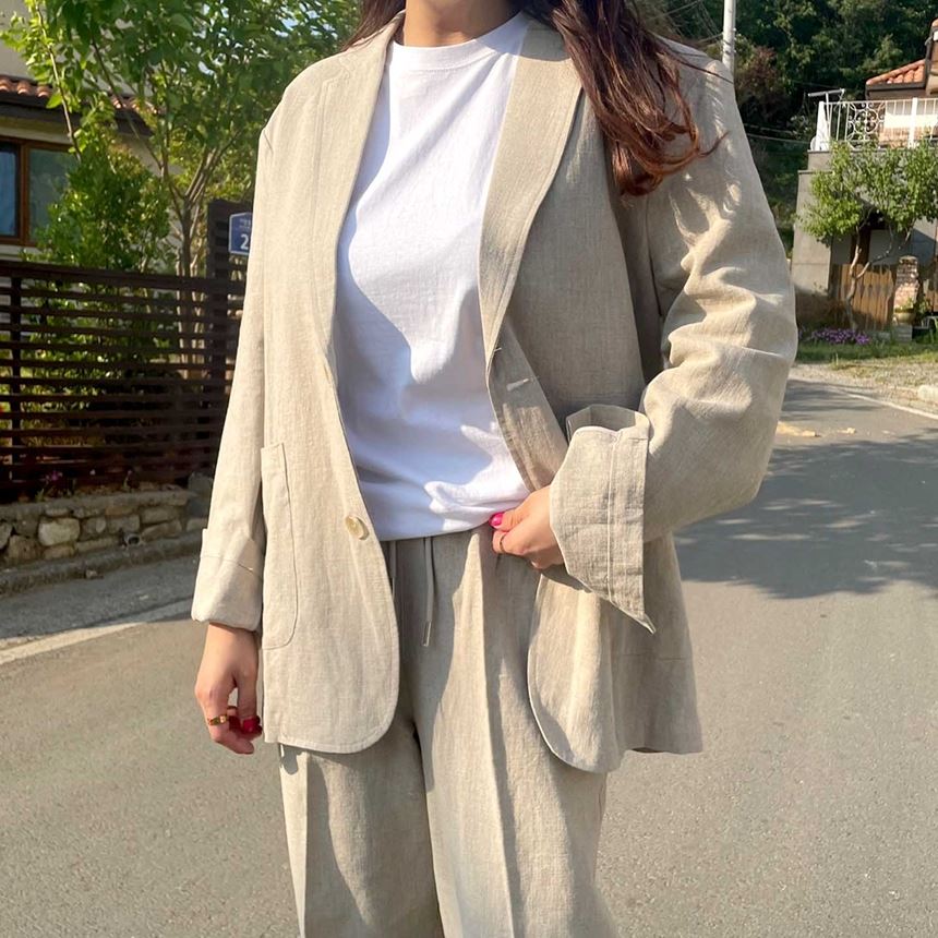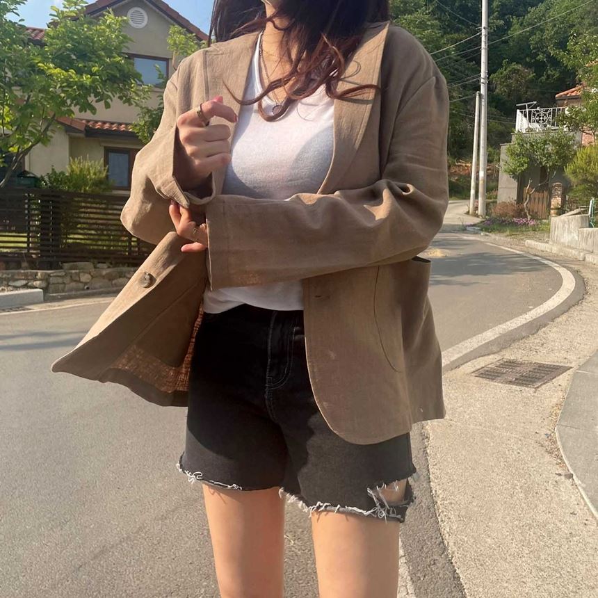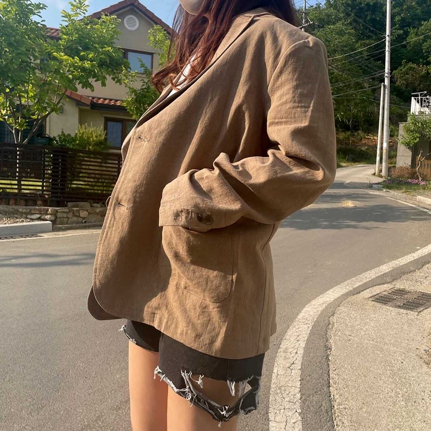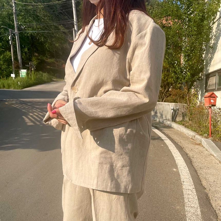• 남녀공용 오버핏 싱글 린넨 자켓