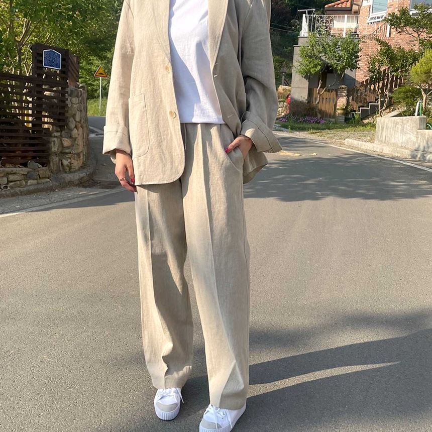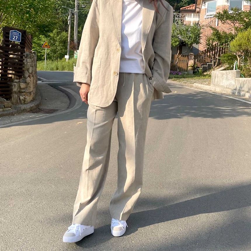 • 무난하게 입기좋은 린넨 밴딩 롱 팬츠에요:)
