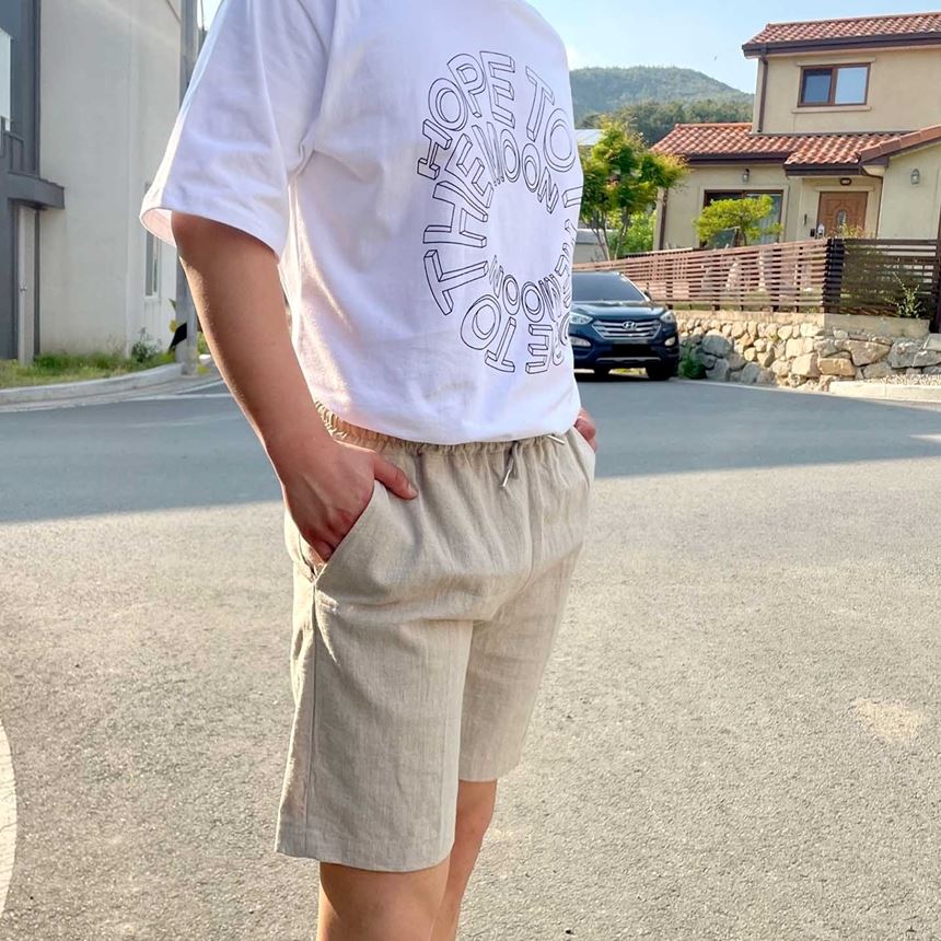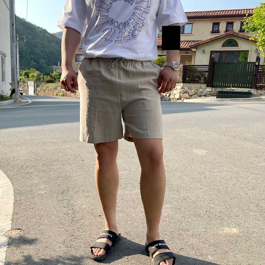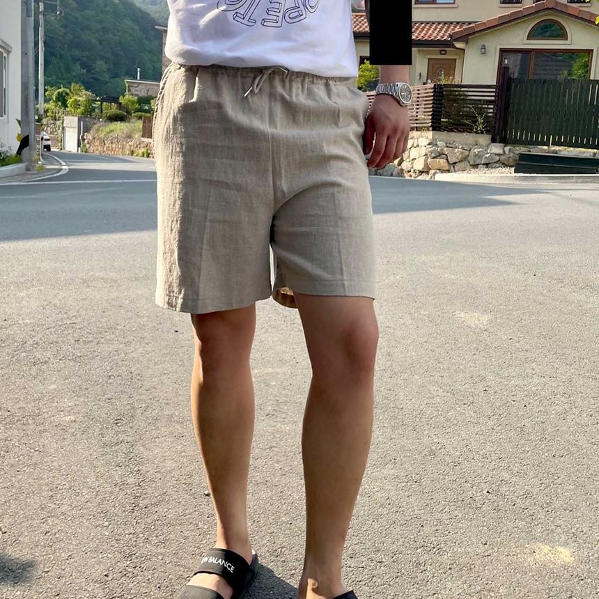 남녀공용 밴딩 린넨 숏팬츠