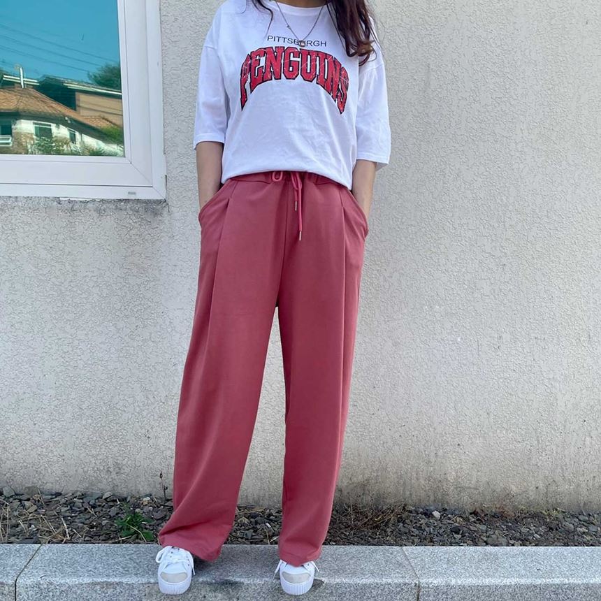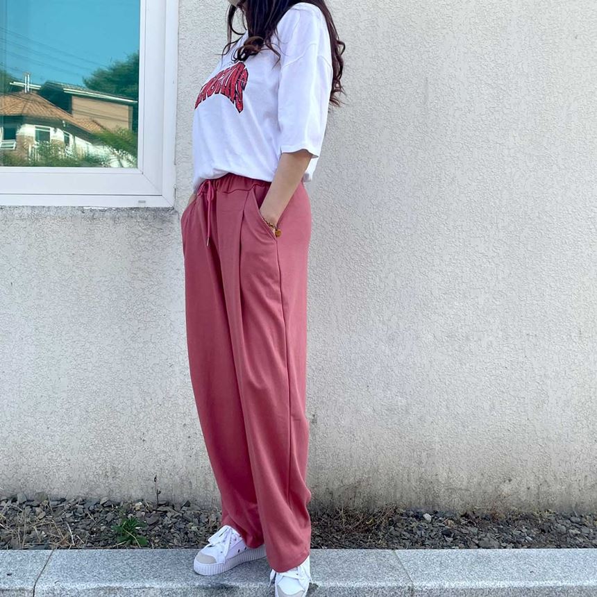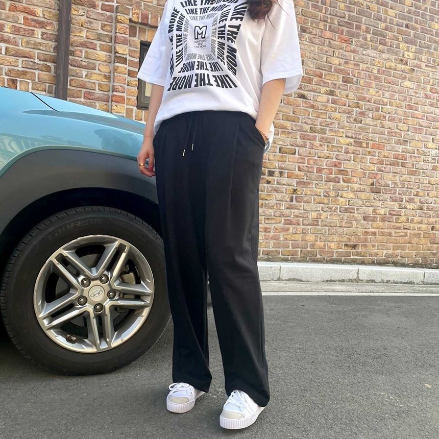 남녀공용 핀턱 와이드 트레이닝 바지