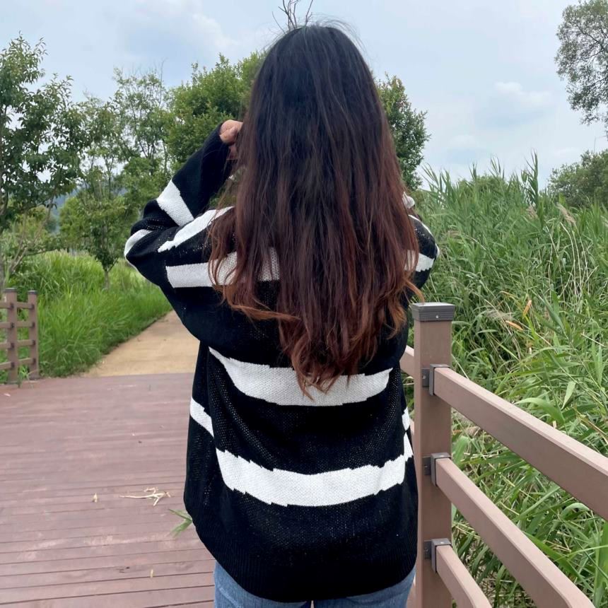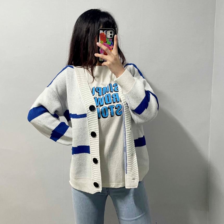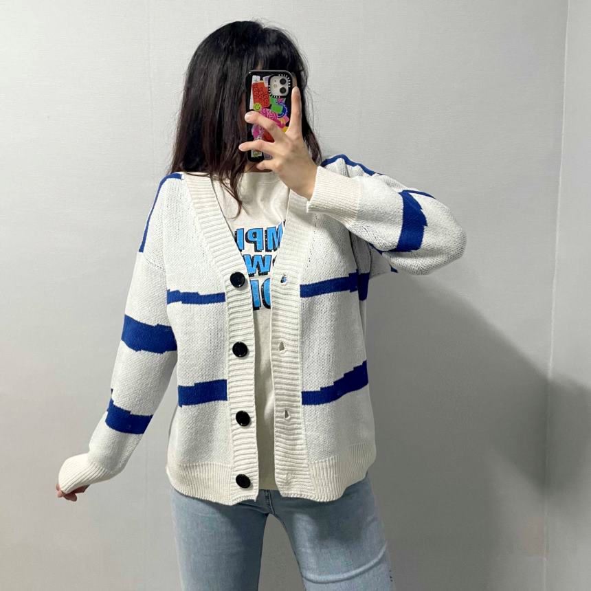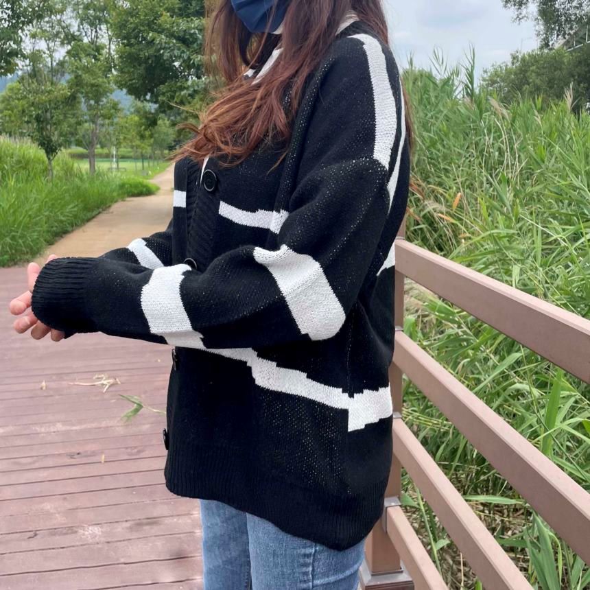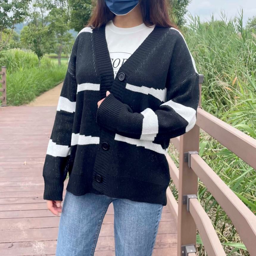루즈핏 물결 배색 니트 가디건 / 민클로즈 / 디비디비 / 구매하기 / 특가할인