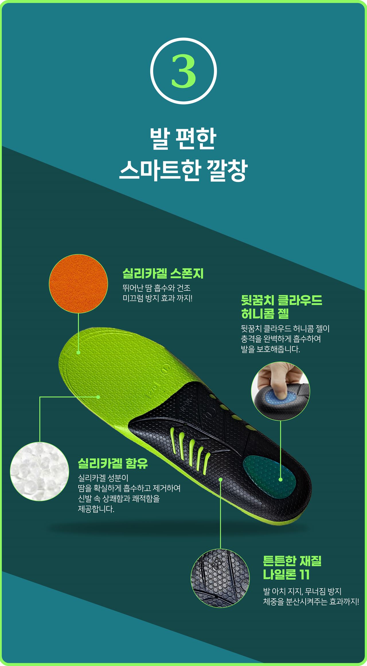 클라우드 깔창 실리카겔 습기 곰팡이 군대 군인 군화 안전화 등산화 운동화 아동화 평발 아치