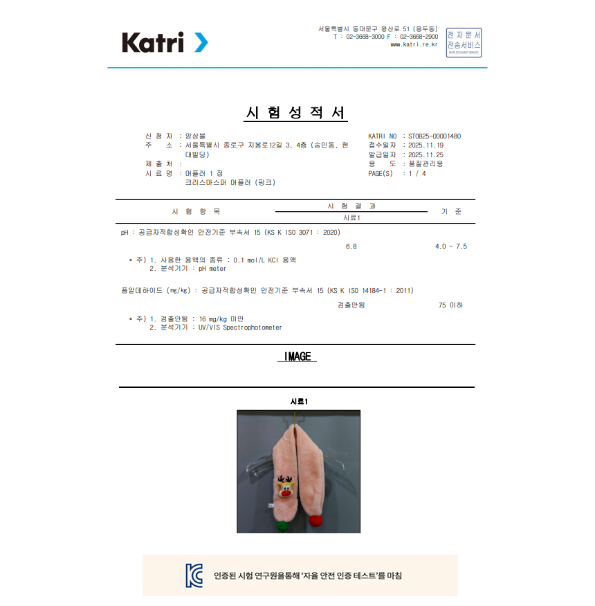 KC인증 크리스마스 루돌프 퍼 어린이 목도리 겨울 머플러 단체 선물 산타