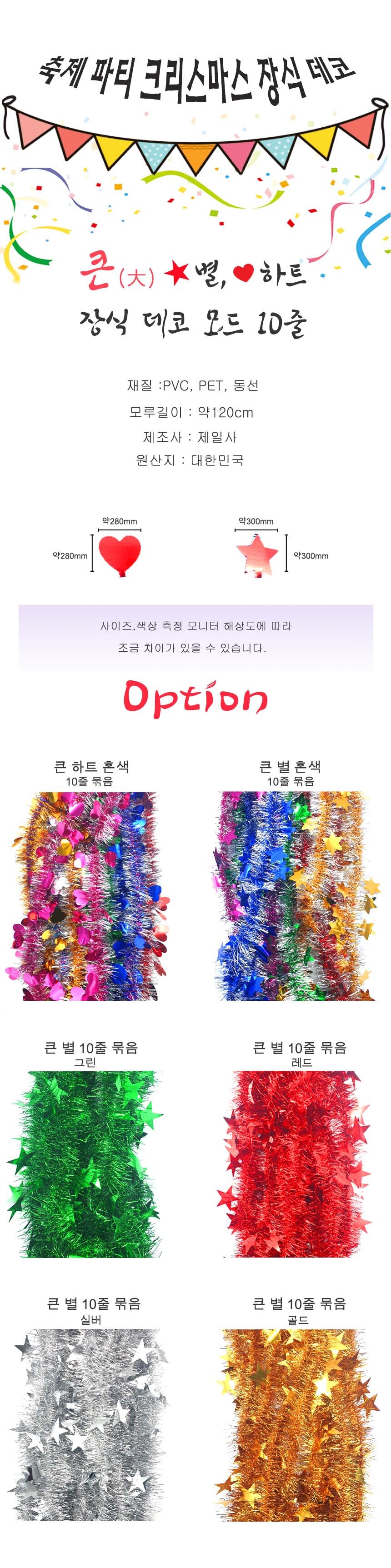 크리스마스 파티 축제 장식 반짝이 큰 별 하트 120cm모루 10줄