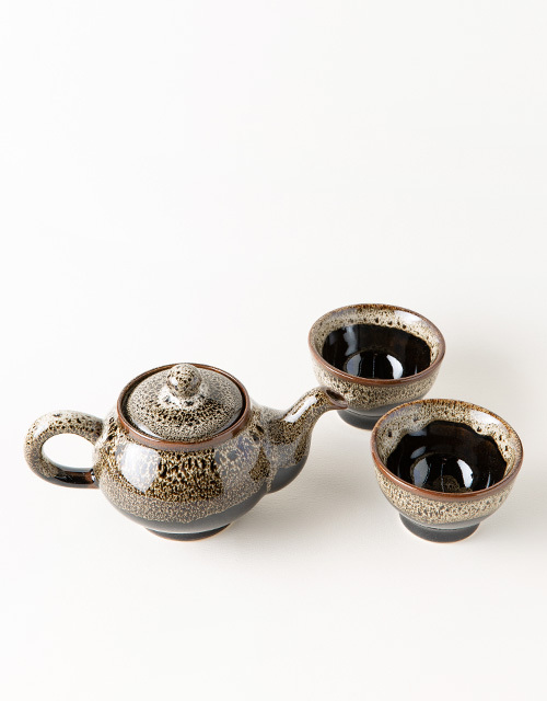 • 이천도자기 이중시유 2인 주전자 찻잔 다기세트