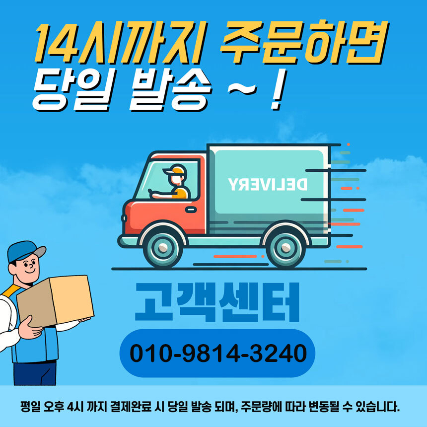 ㆍ 상품 수령일로부터 7일 이내 반품, 교환 가능합니다. ㆍ 단순변심 및 고객님의 사정으로 반품, 교환 하실 경우, 반송비(교환의 경우 왕복배송비)는 고객님 부담입니다. ㆍ 상품의 내용이 표시·광고의 내용과 다른 경우에는 상품을 수령한 날부터 3개월 이내, 그 사실을 안 날 또는 알 수 있었던 날부터 30일 이내에 청약철회 가능합니다.