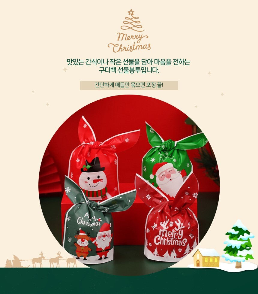 • 크리스마스 구디백 선물 주머니 간식 포장 봉투 유치원 어린이집 학원 단체 답례품