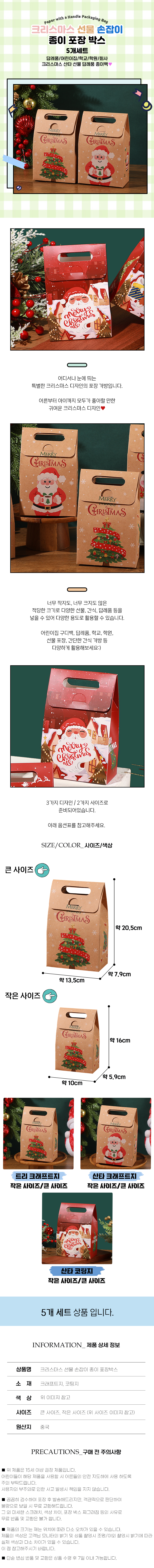 크리스마스 선물 손잡이 종이 포장 박스 5개세트 어린이집 구디백 답례품