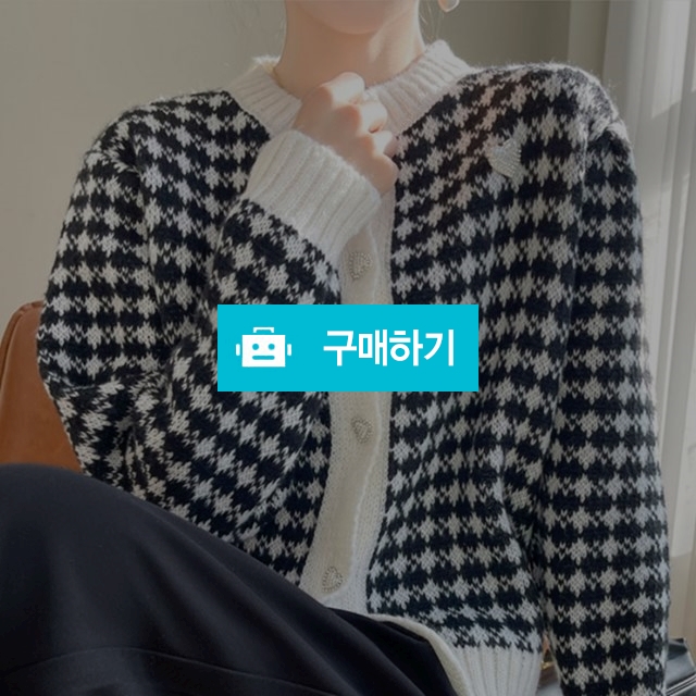 여성 하트단추 라운드넥  체크 가디건 포인트 크롭 / 동가미샵 / 디비디비 / 구매하기 / 특가할인