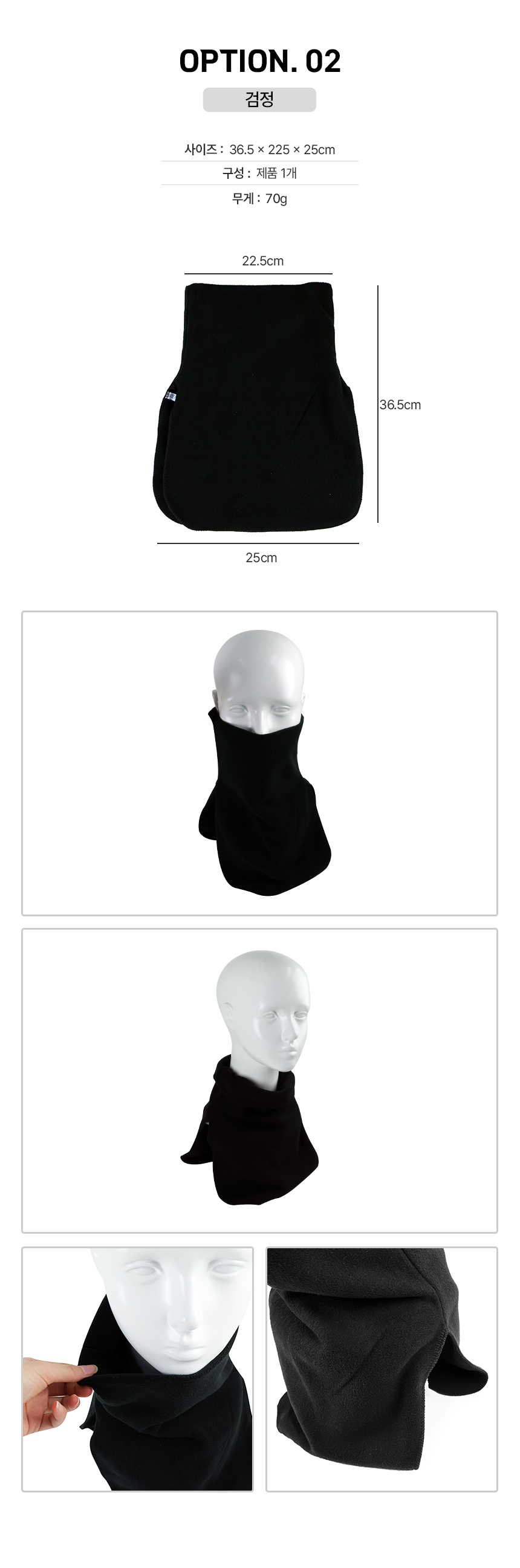 • 부드러운 하이넥 목폴라워머 페이크폴라티 검정 방한 스포츠 라이딩 캠핑 낚시
