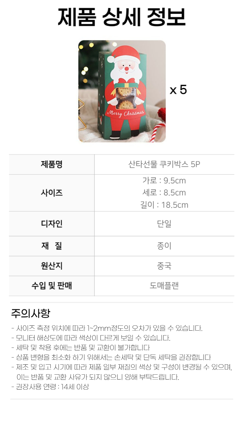 • 대용량 크리스마스 쿠키상자 5P 선물 포장 주머니 산타 눈사람 답례품
