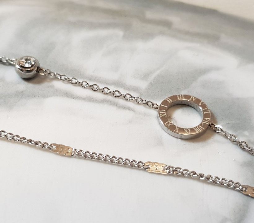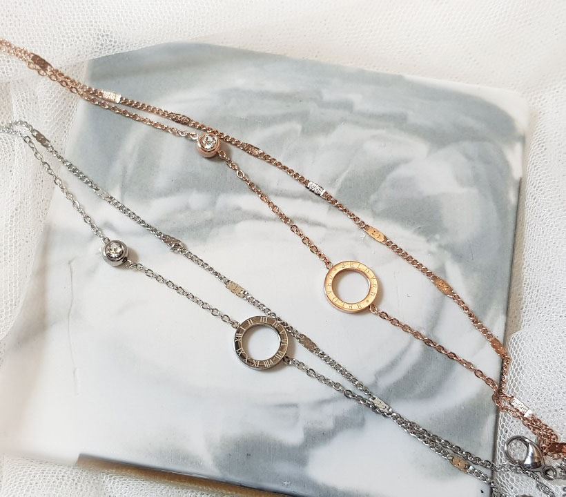 • 써지컬스틸 두줄 불리써클 체인 명품스타일 발찌