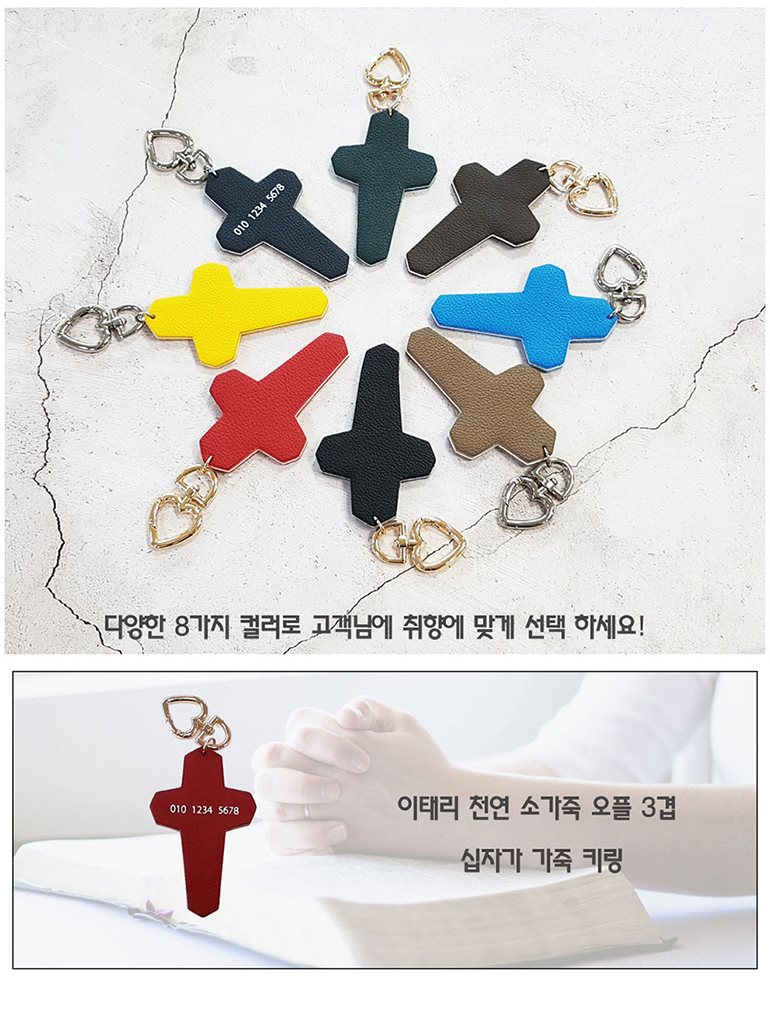• 이태리 가죽 키링 3겹 통통이 십자가 키링 무료 이니셜
