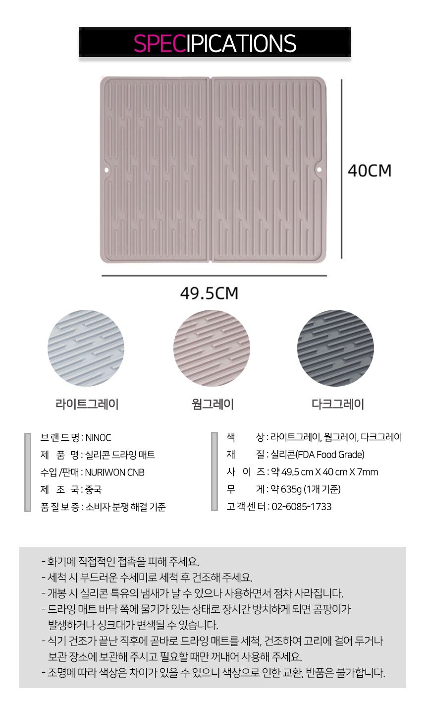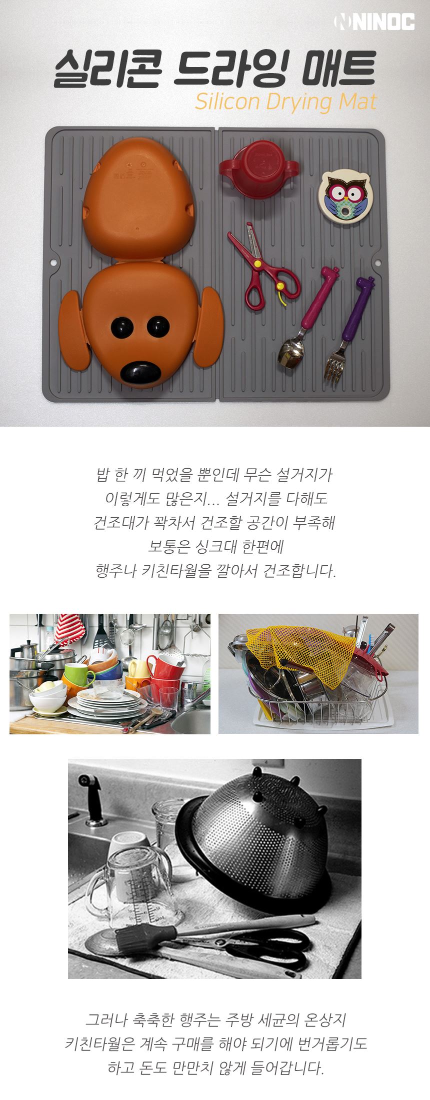 • 니녹 실리콘 드라잉 매트 다용도 식기 건조대 건조 주방 매트 무독성 항균 주방용품 생활용품