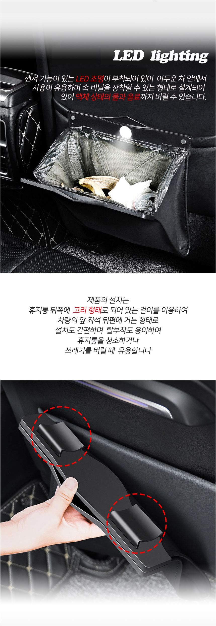니녹 차량용 LED 쓰레기통 쓰레기봉투 뒷좌석용 휴지통 일체형 [휴지통+비닐봉투] / 니녹 / 디비디비 / 구매하기 / 특가할인