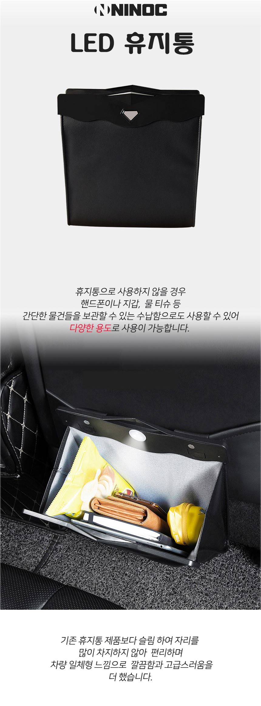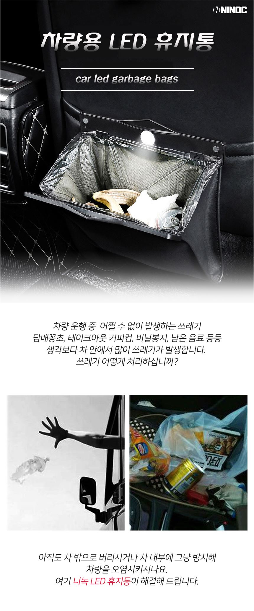 품명 니녹 차량용 LED 휴지통
