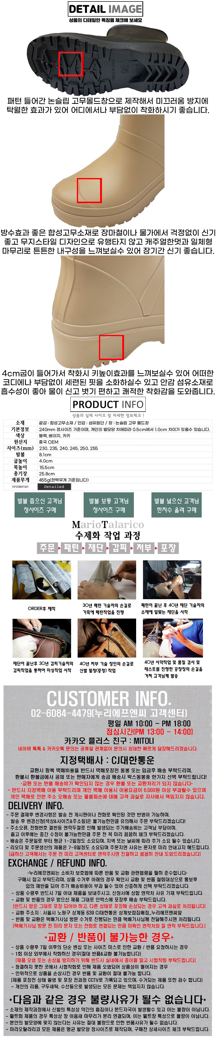 • 마리오탈라리코 클래식 무지 방수 레인부츠 4cm굽 여성장화 키높이장화 방수신발