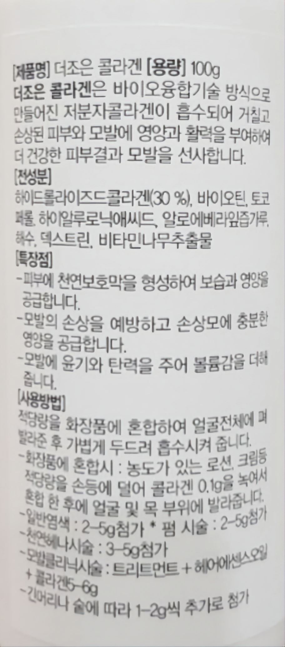 • 더조은콜라겐 100g 콜라겐가루 모든화장품에 사용가능