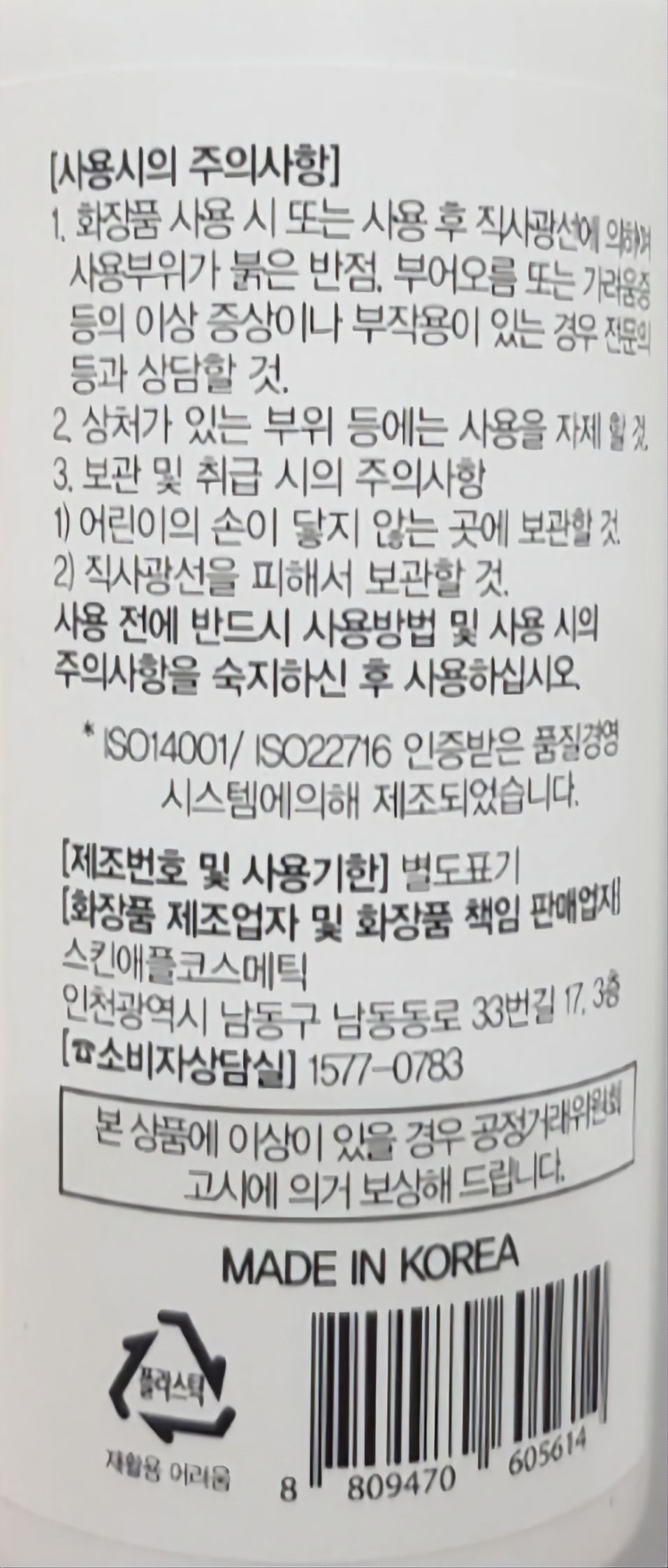 ㆍ 제품의 불량이 아닌 소비자의 귀책사유로 제품의 불량이 발생한 경우에는 환불, 교환을 받으실 수 없습니다.