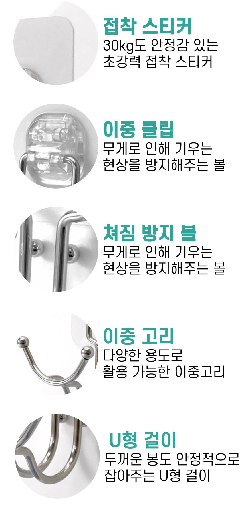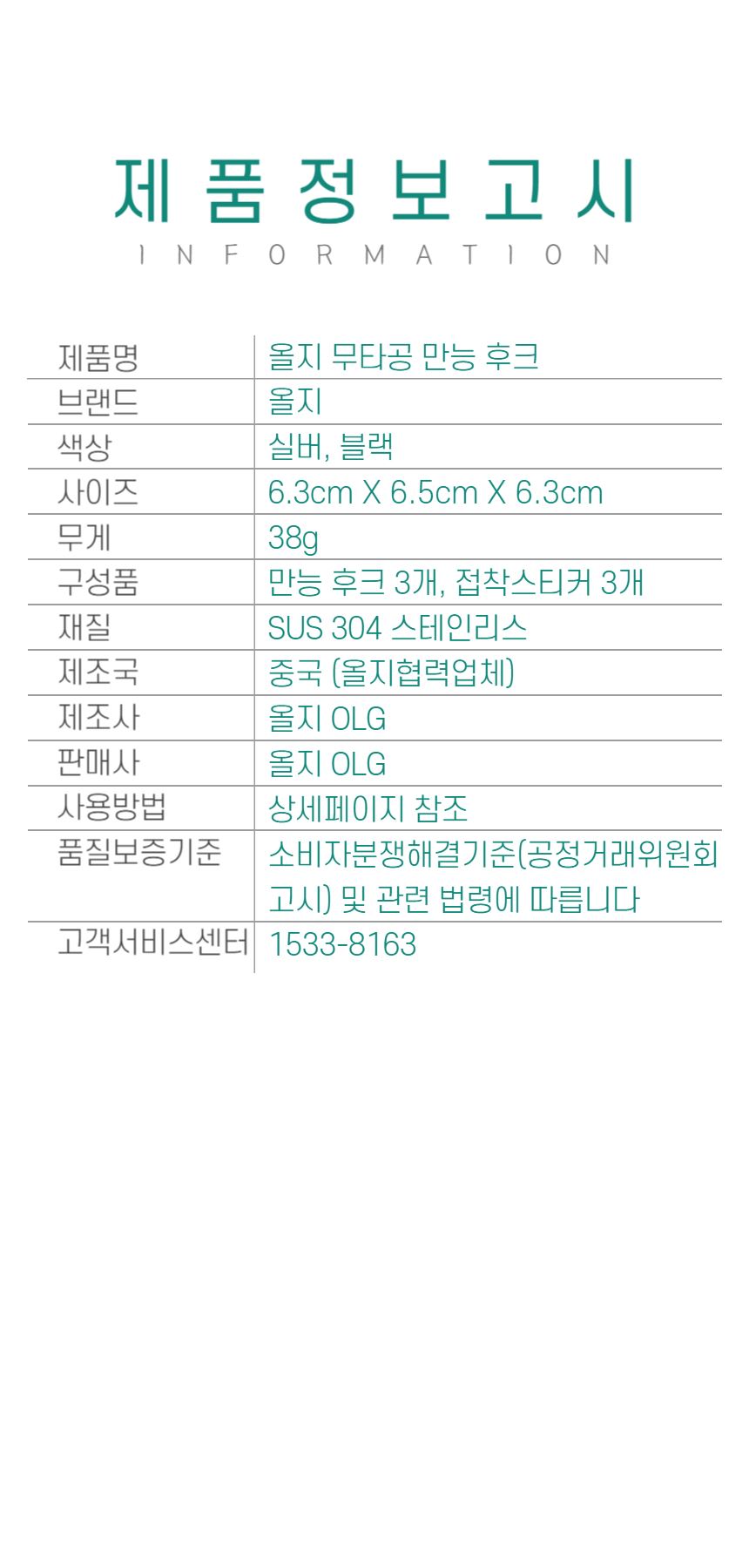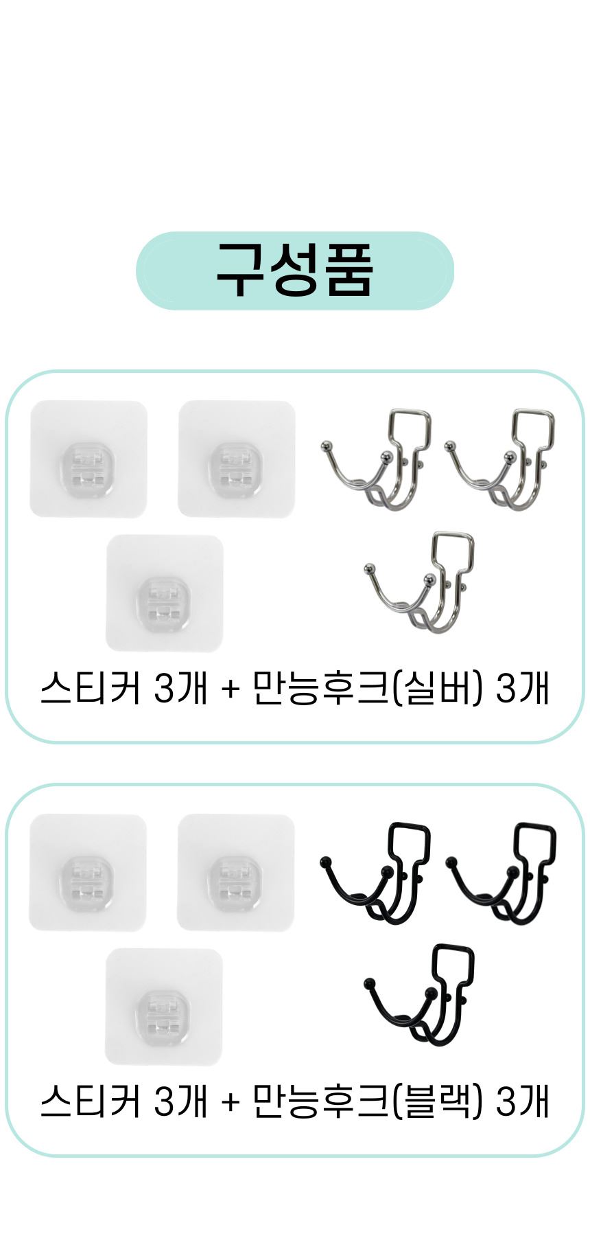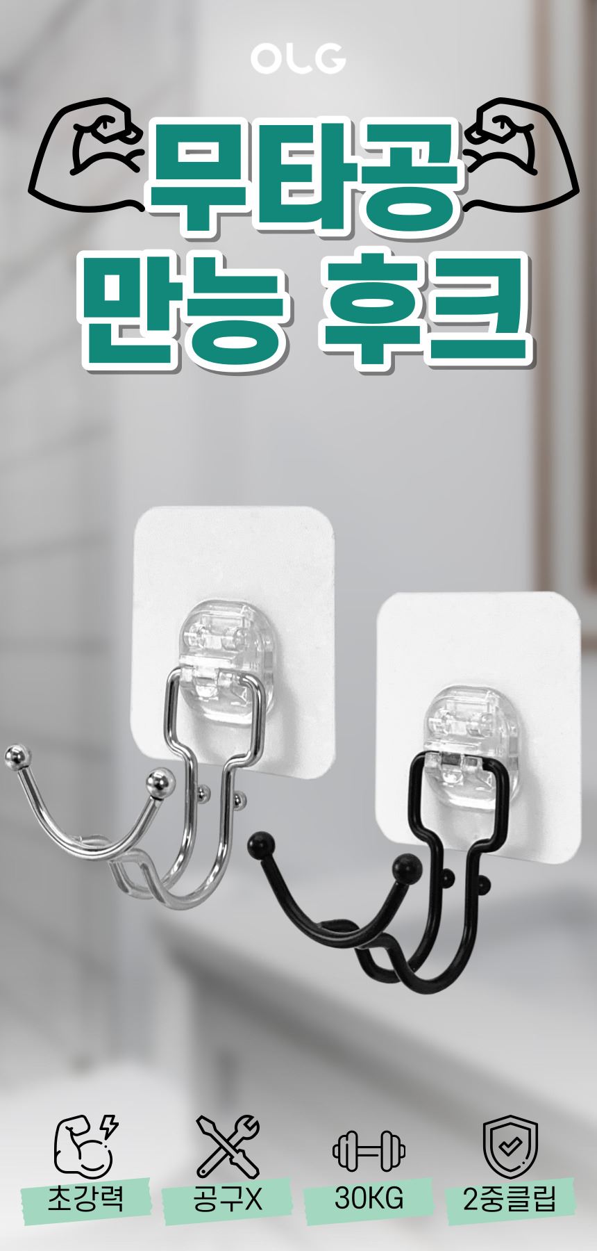 올지 무타공 만능후크 3p세트 접착식 가방 걸이 모자 벽 옷걸이 투명