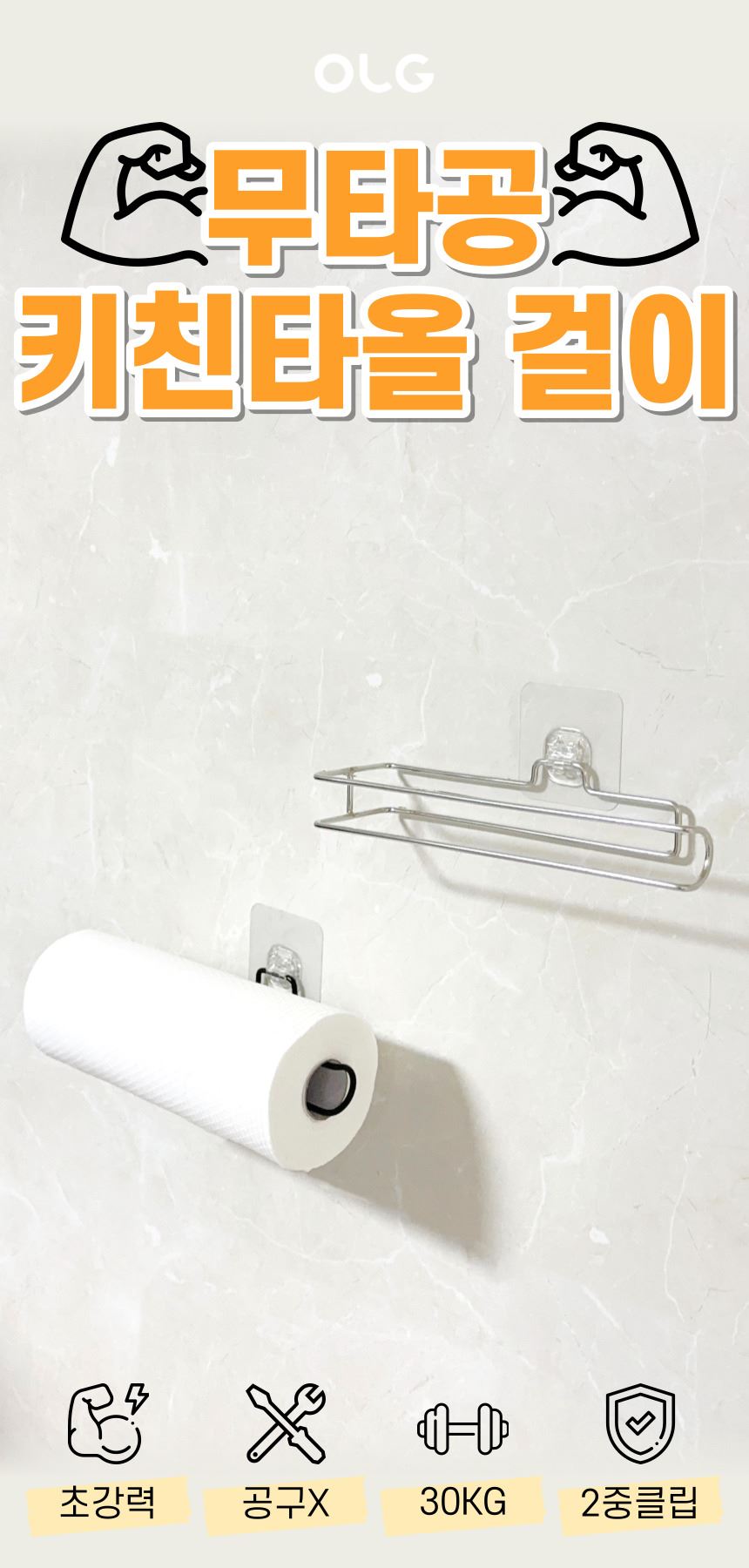 구성품 올지 키친타올걸이 1개, 무타공 스티커 1개
