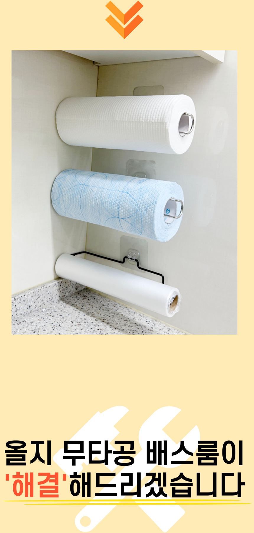 올지 무타공 키친타올걸이 키친타올 꽂이 홀더 거치대 키친타월 주방 싱크대 접착식 스텐