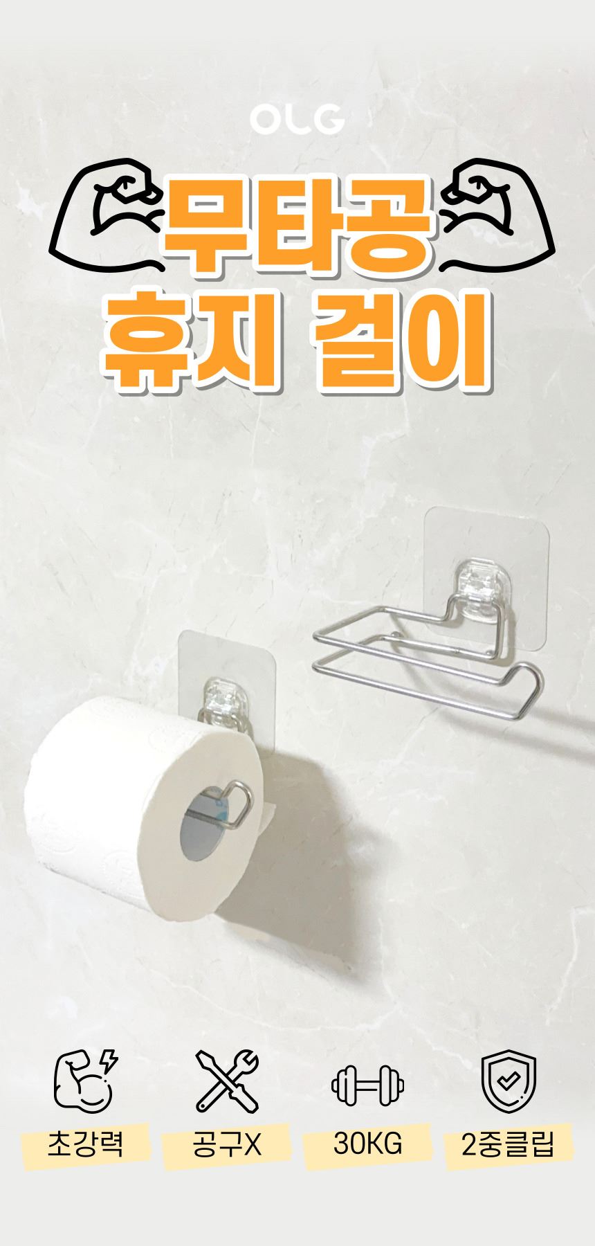 • 올지 무타공 휴지걸이 화장지 걸이 스텐 접착식 심플 호텔
