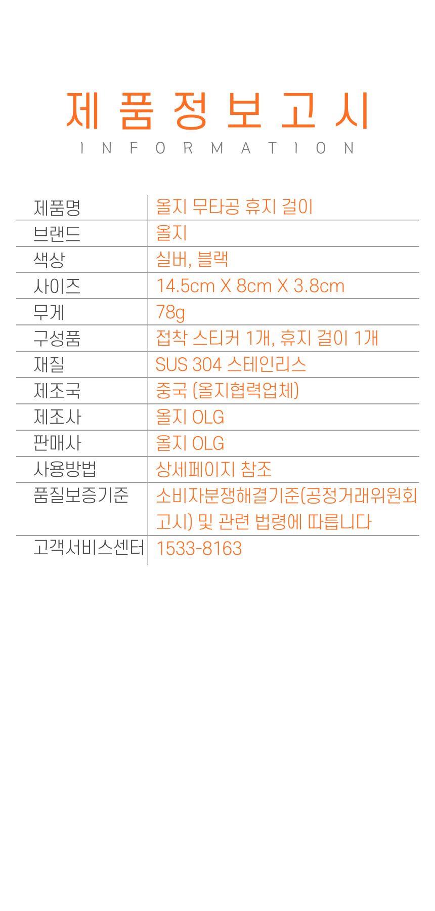 올지 무타공 휴지걸이 화장지 걸이 스텐 접착식 심플 호텔