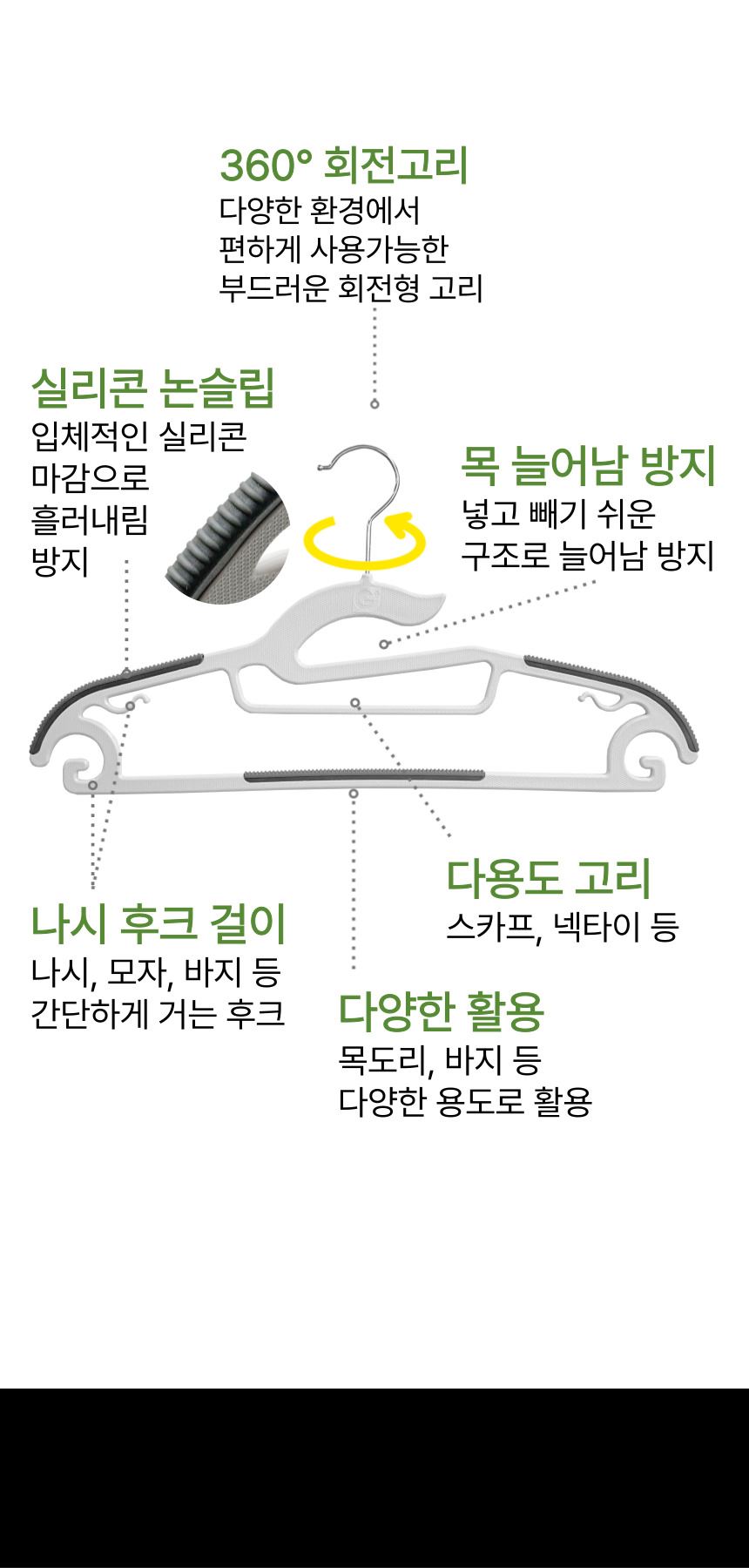 올지 라운드 논슬립옷걸이 어깨뿔방지 옷걸이 공간활용 플라스틱 회전고리 실리콘 상의 니트 정장 패딩 코트