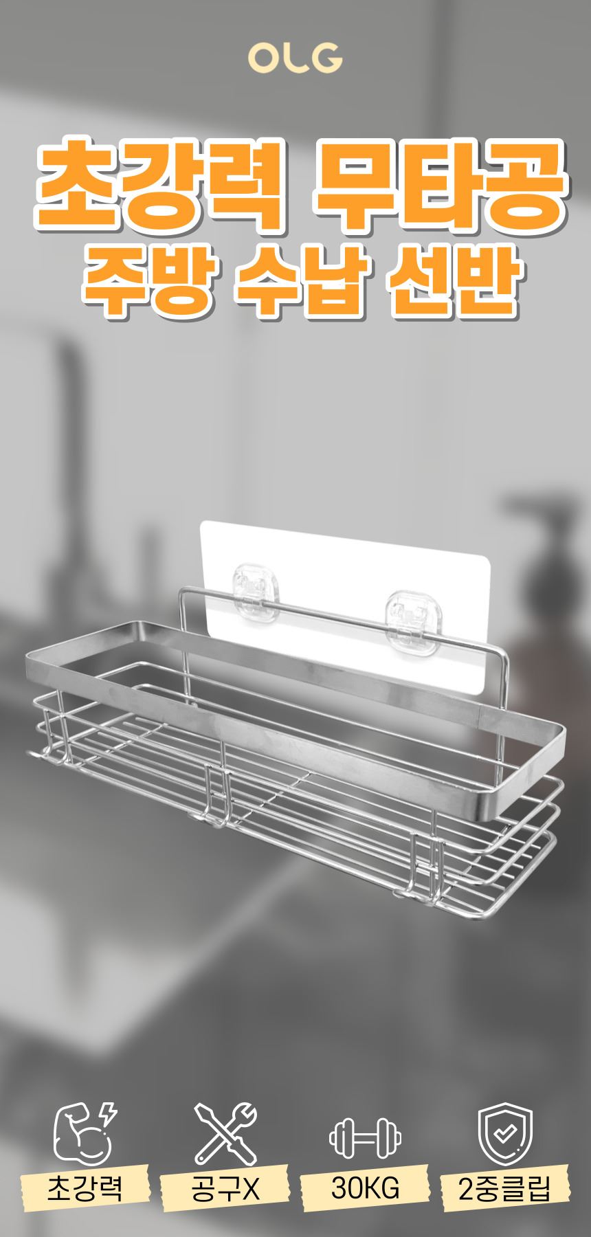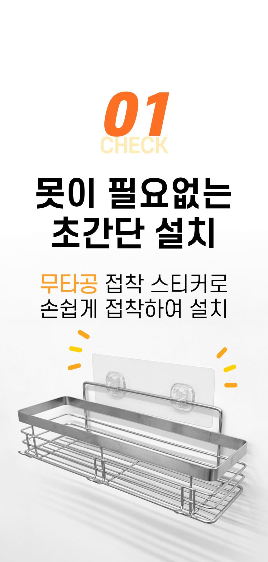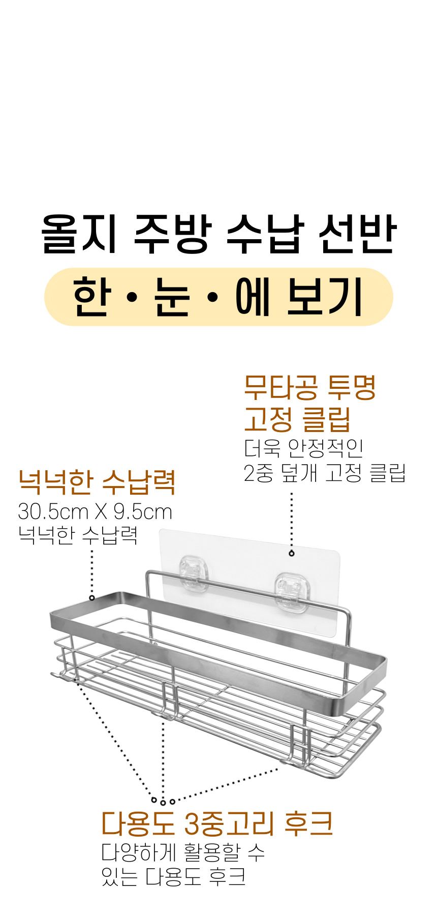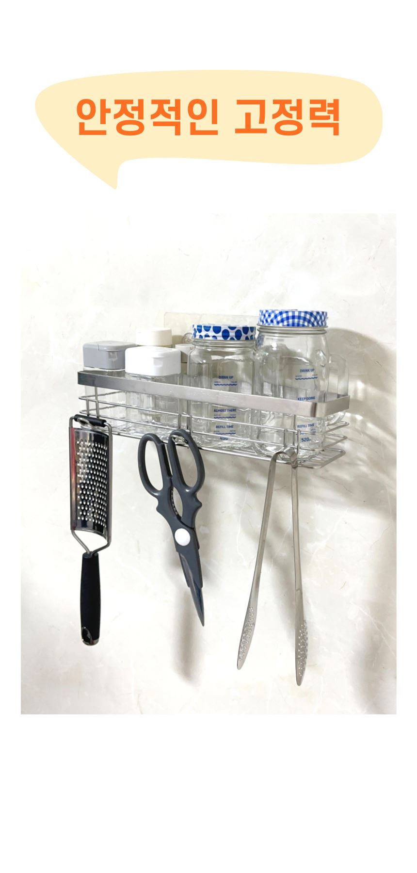 올지 무타공 주방선반 양념통선반 부착형 싱크대 수납 정리대 컵 업소용 스텐