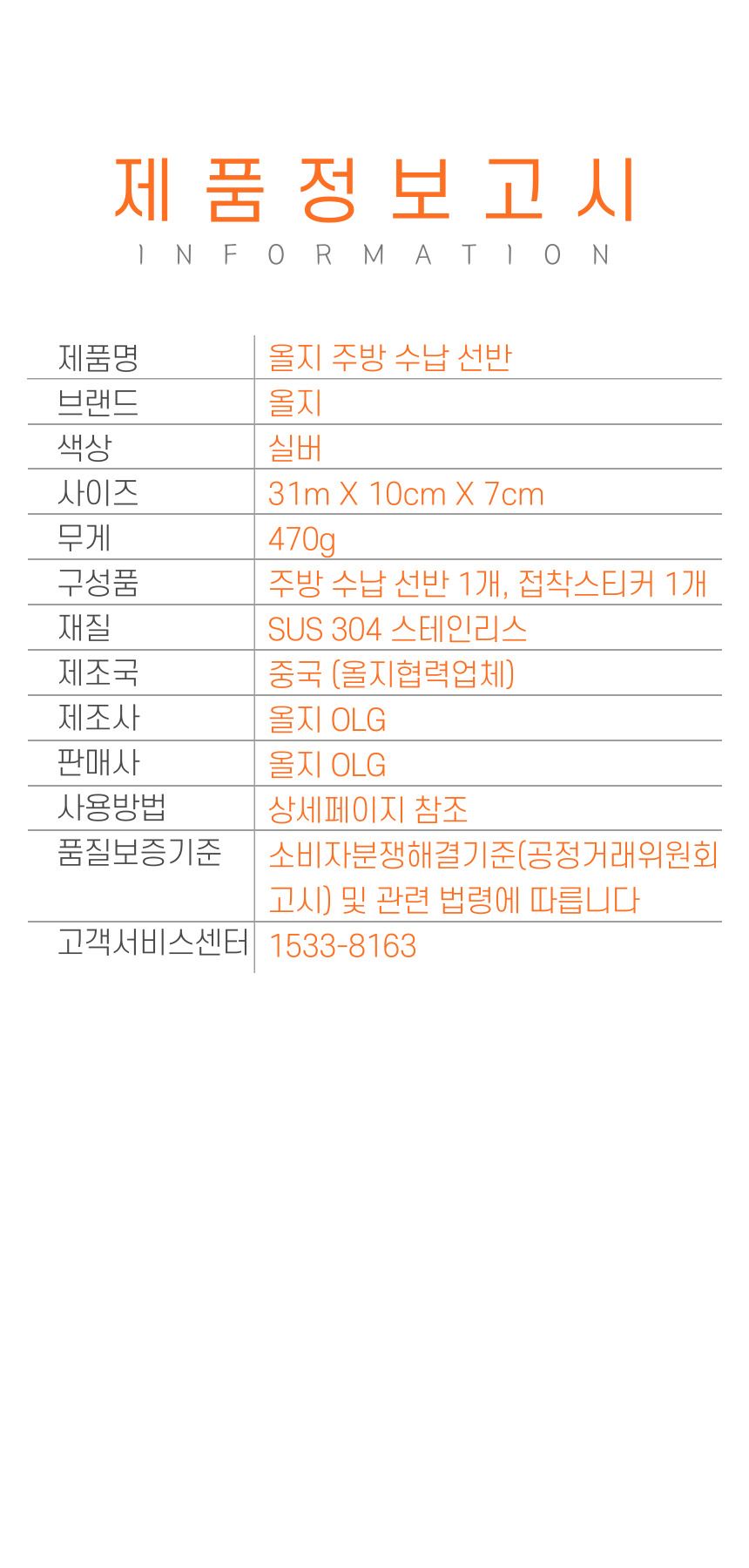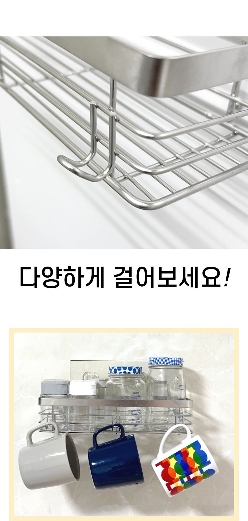 • 올지 무타공 주방선반 양념통선반 부착형 싱크대 수납 정리대 컵 업소용 스텐