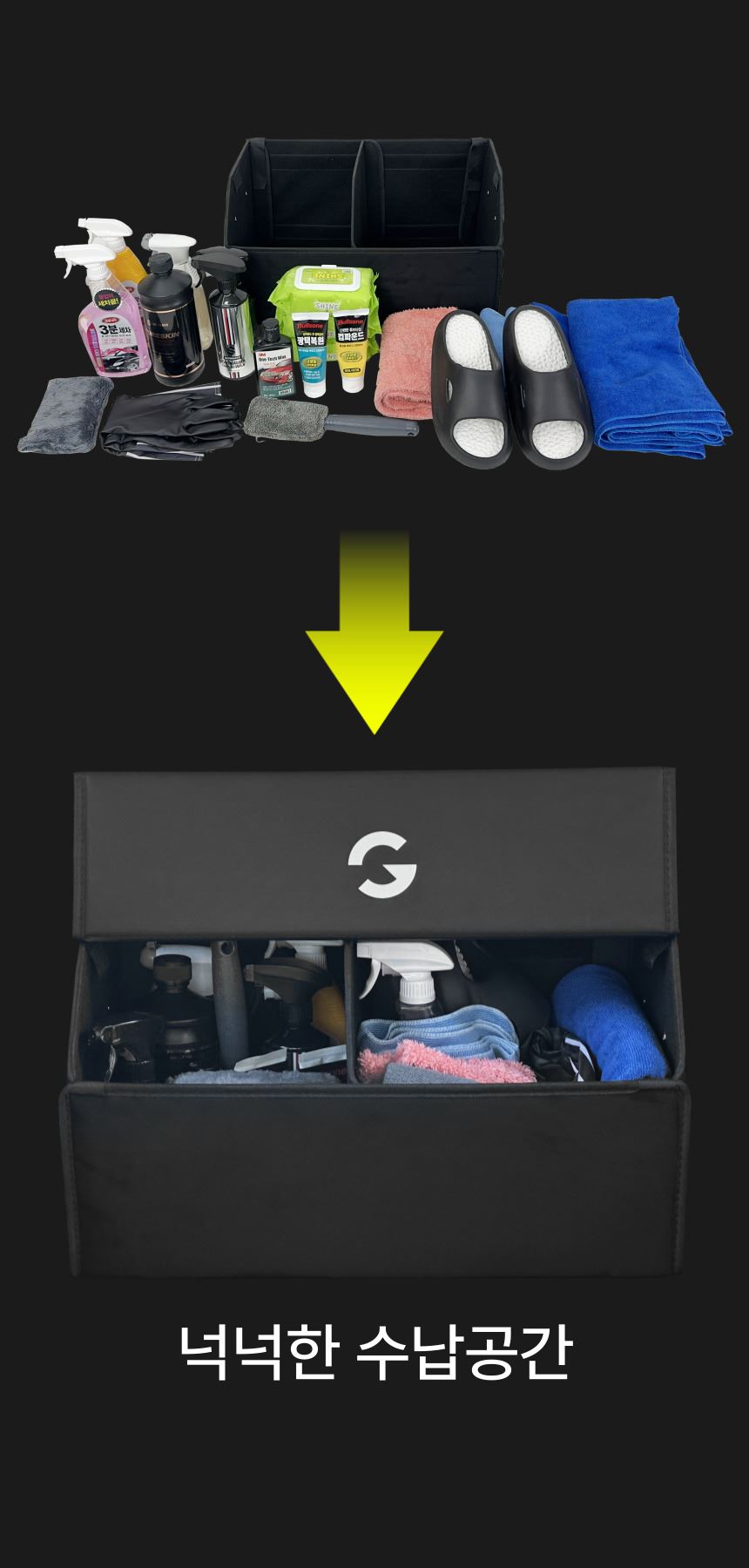 올지 와이드 트렁크정리함 세차가방 트렁크수납함 세차툴백 차량 자동차 트렁크 신발