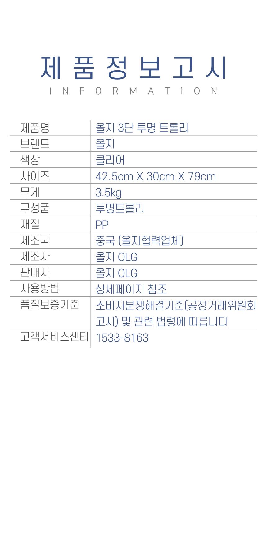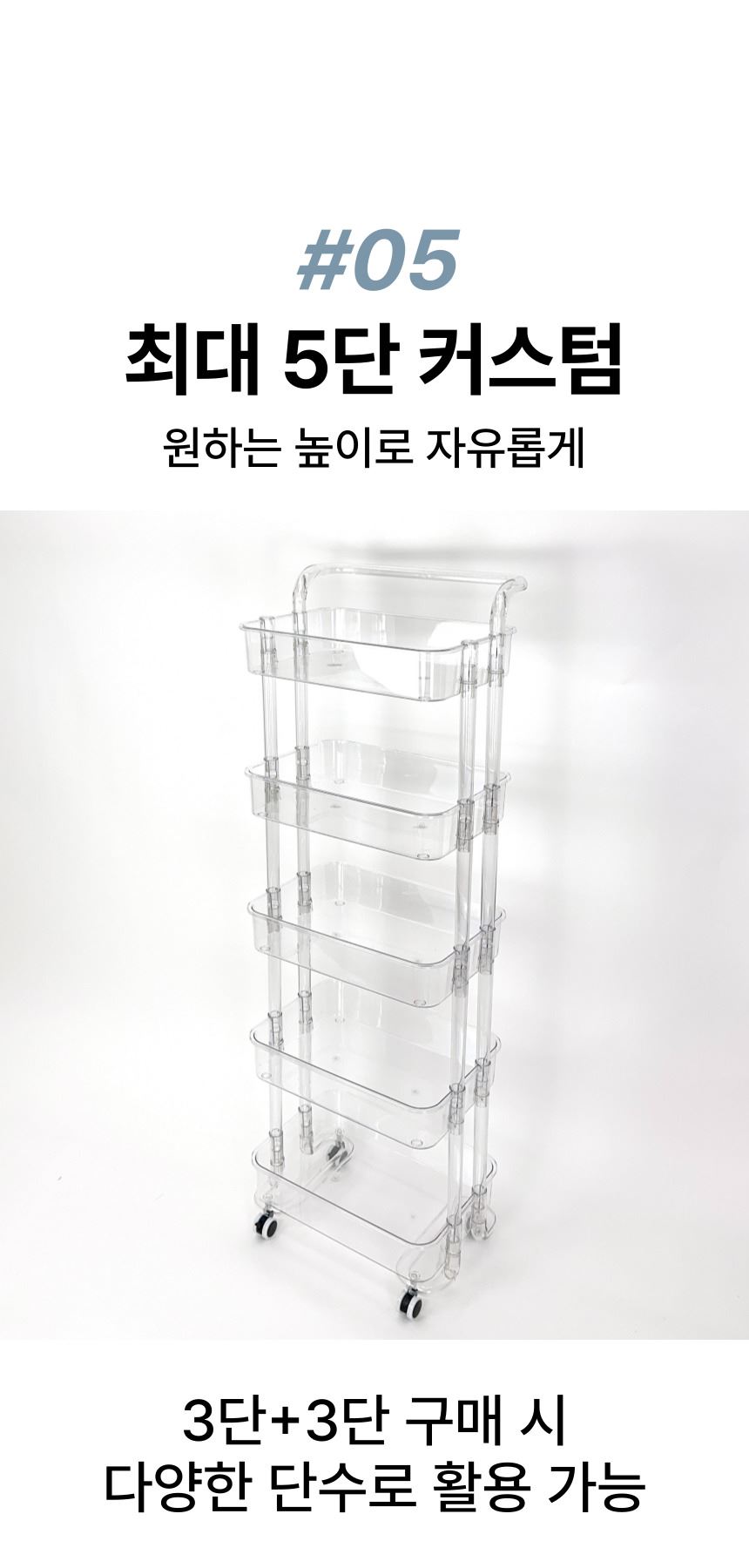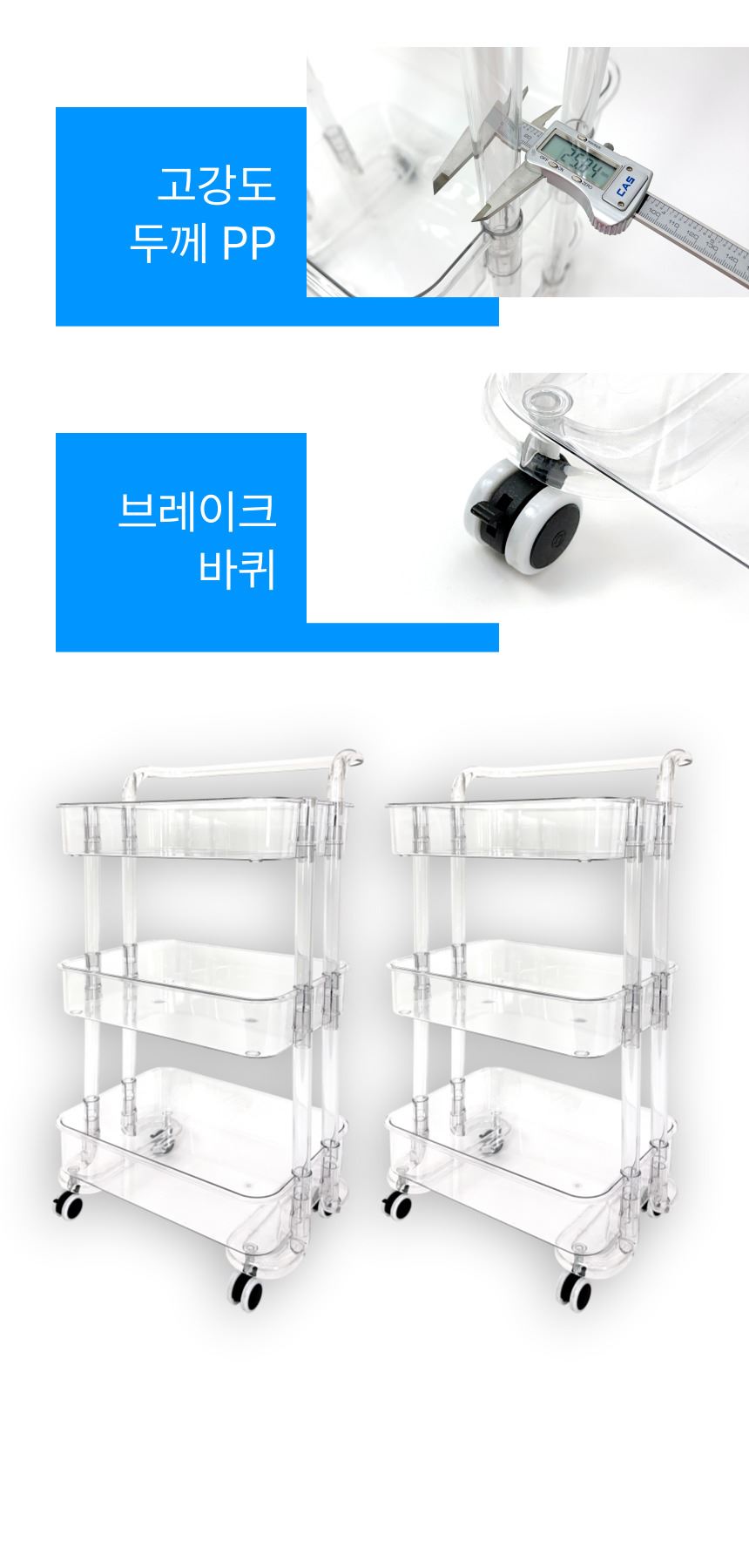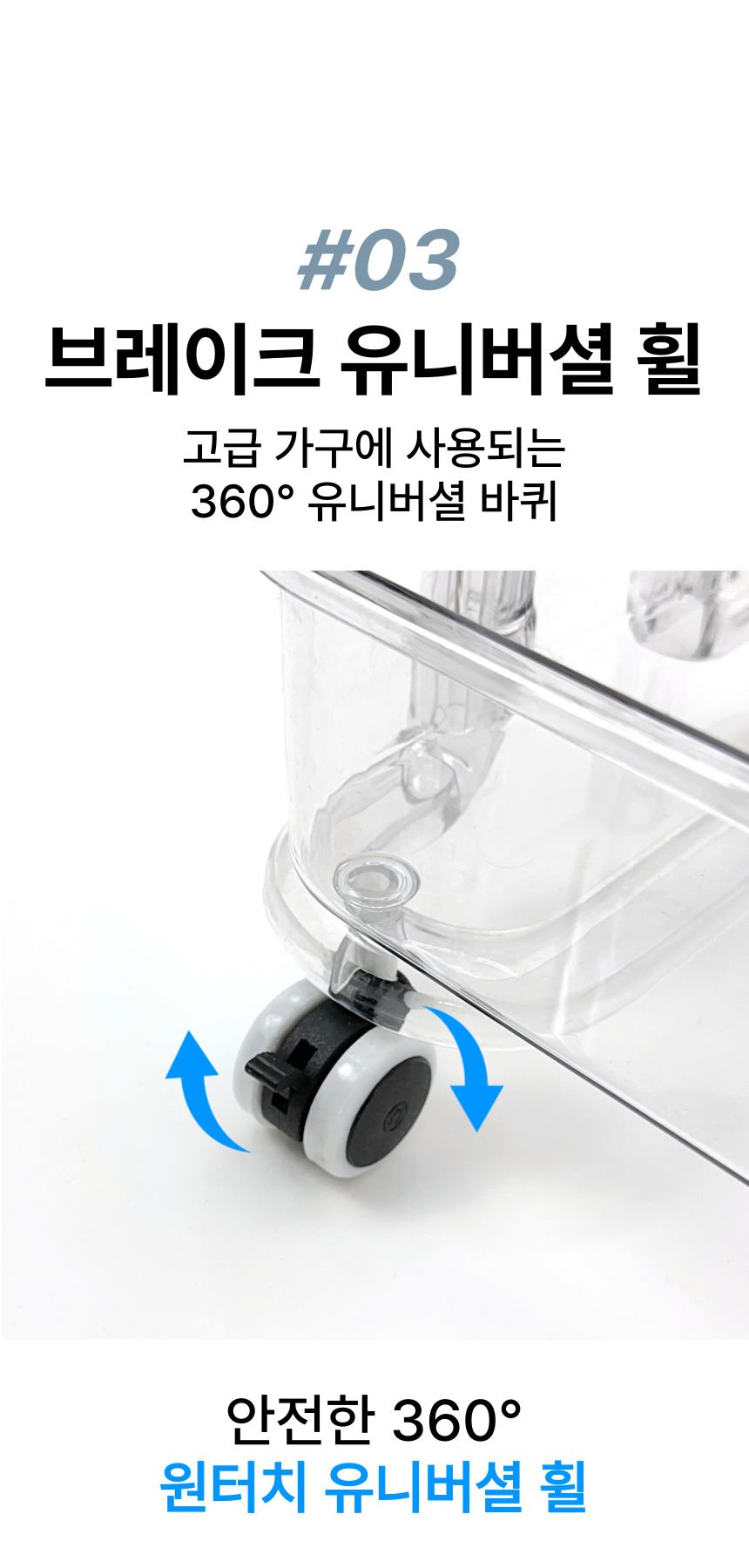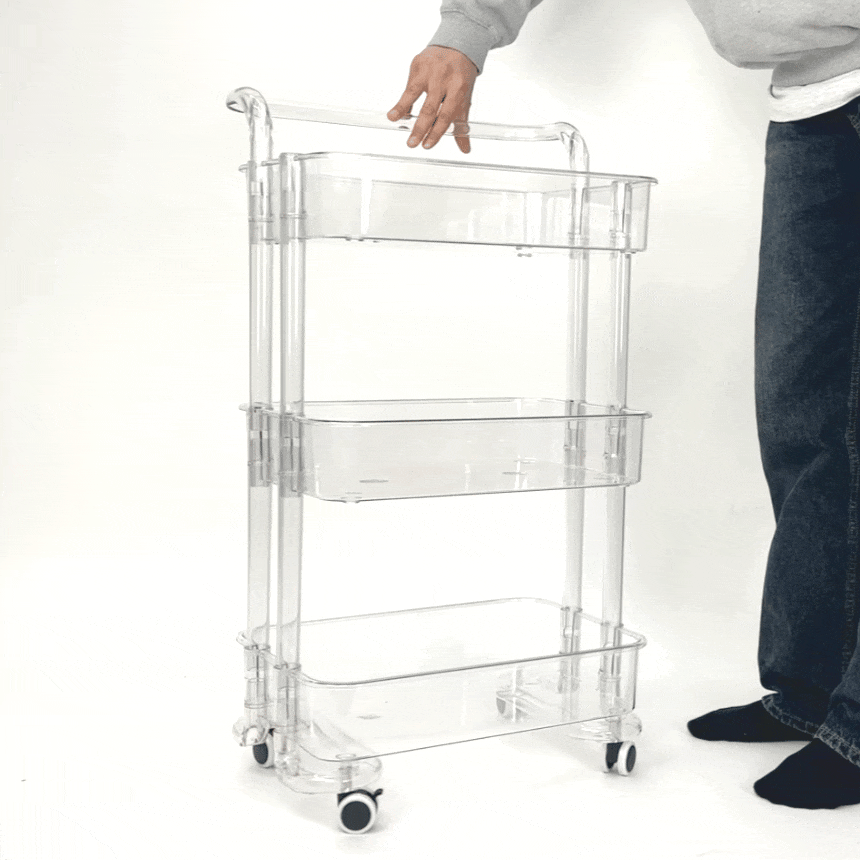 • 올지 투명 트롤리 수납함 3단 주방 360도 회전 핸들 카트 모던 미드센츄리