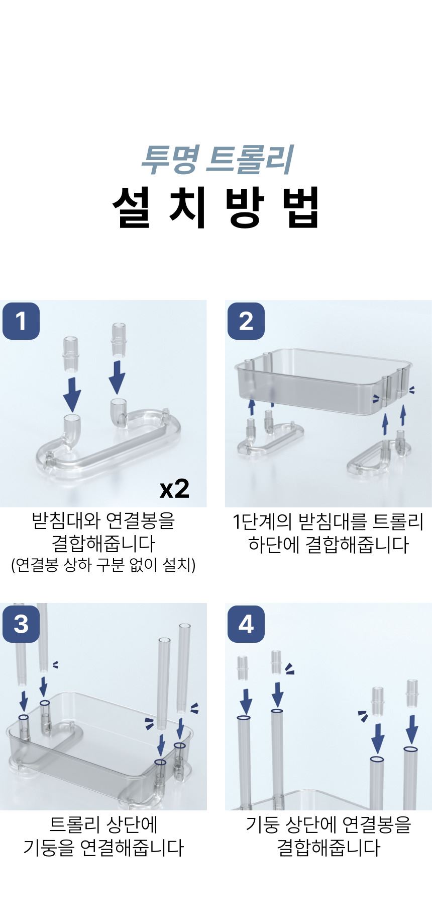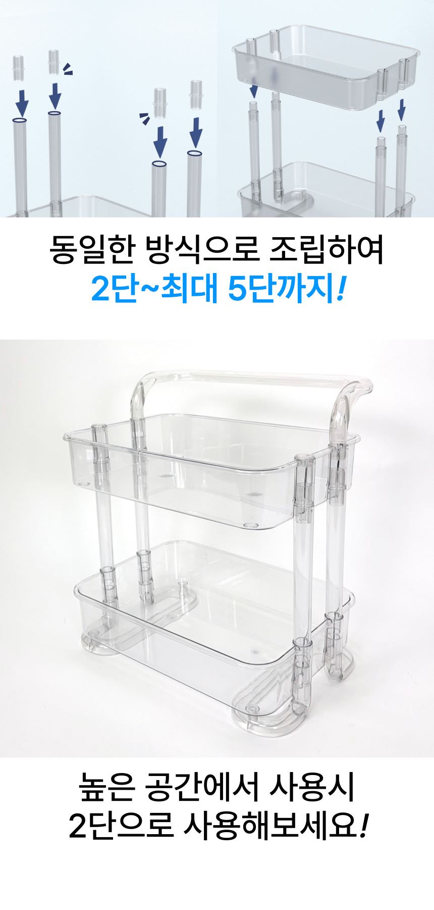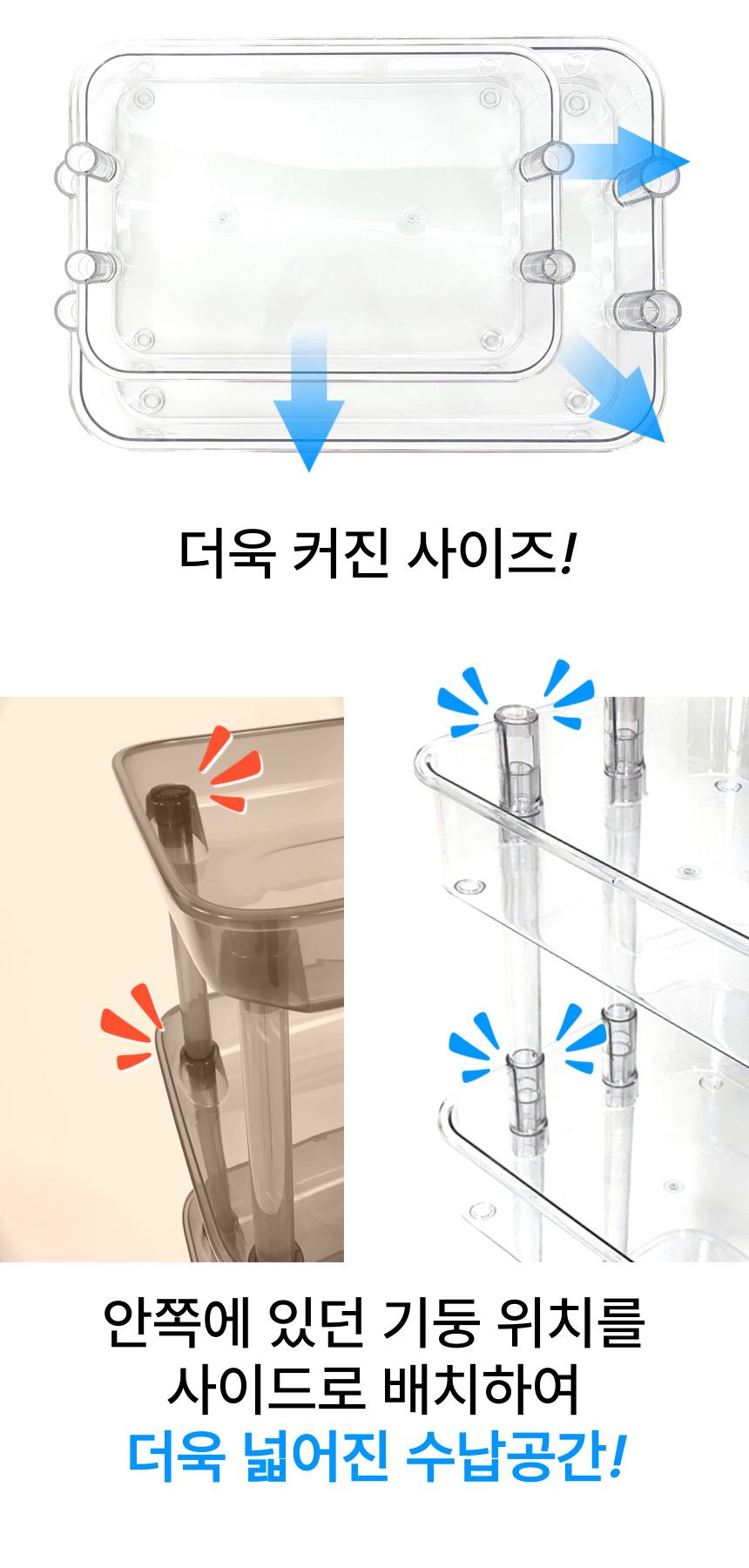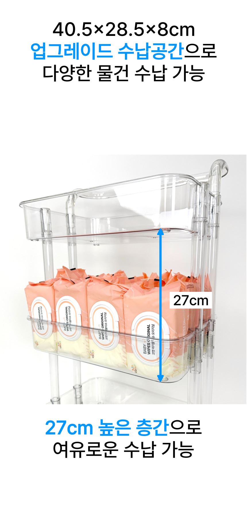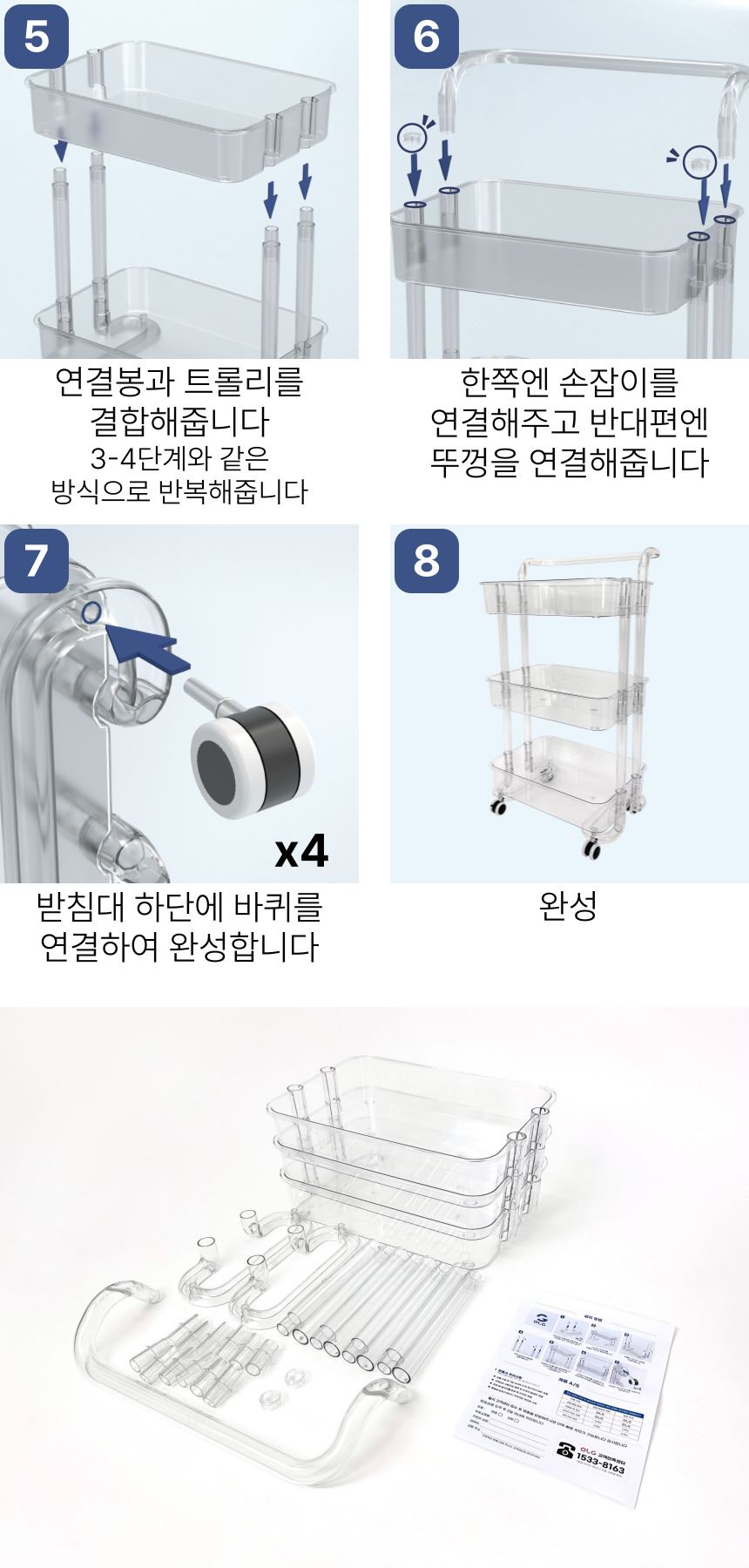 • 올지 투명 트롤리 수납함 3단 주방 360도 회전 핸들 카트 모던 미드센츄리