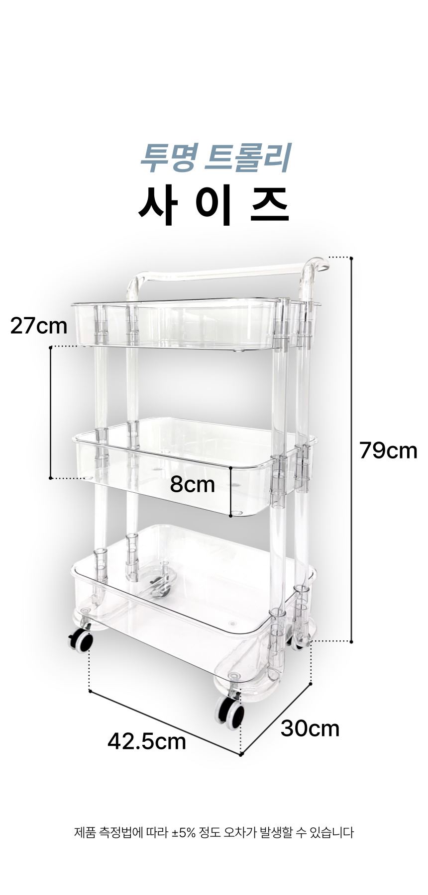 올지 투명 트롤리 수납함 3단 주방 360도 회전 핸들 카트 모던 미드센츄리