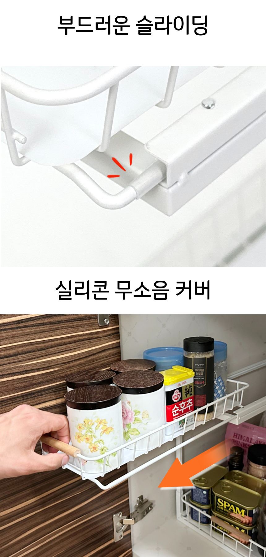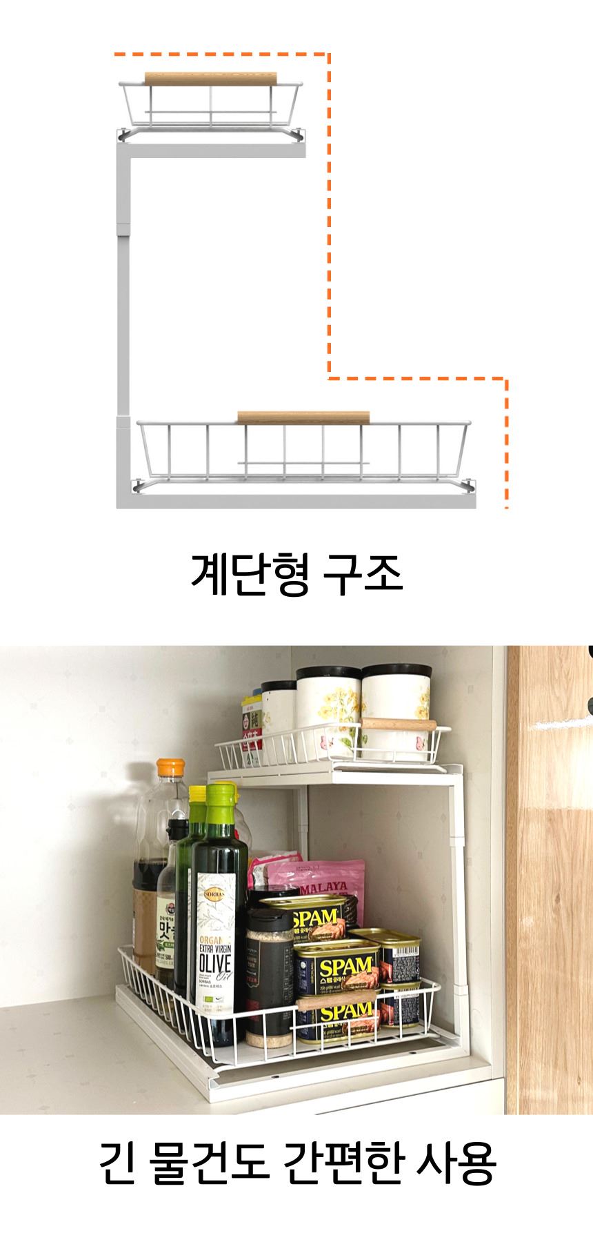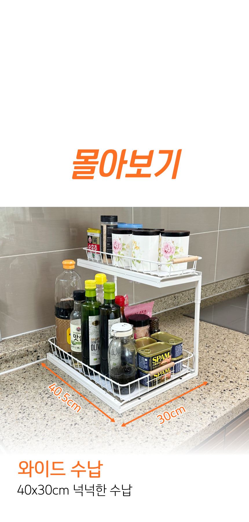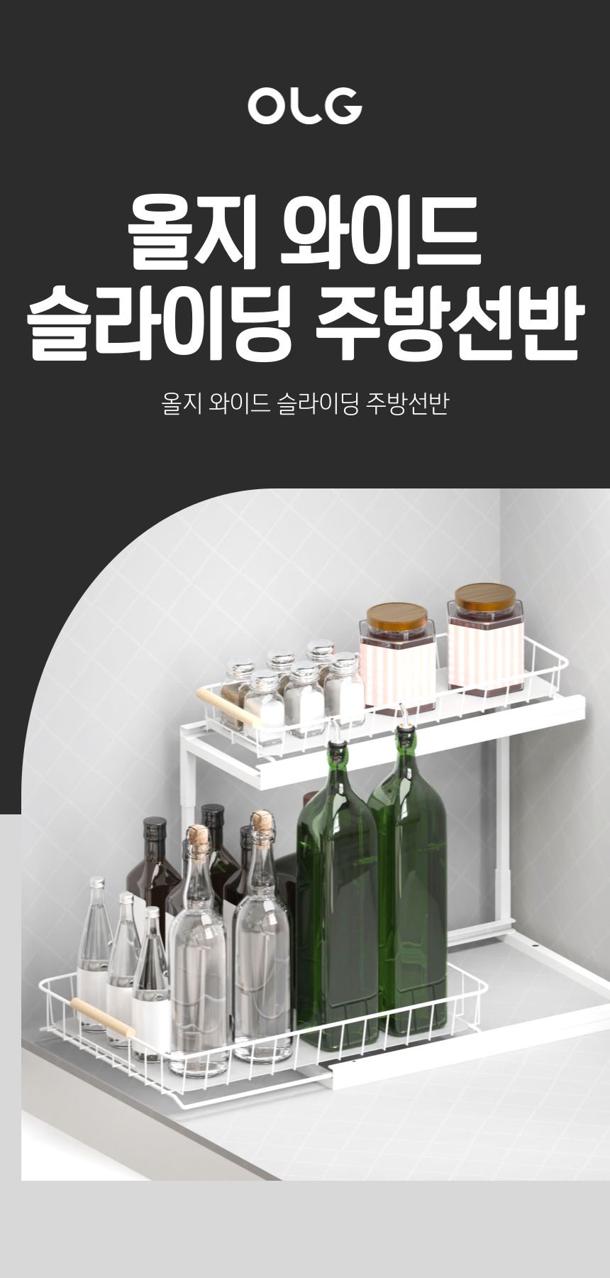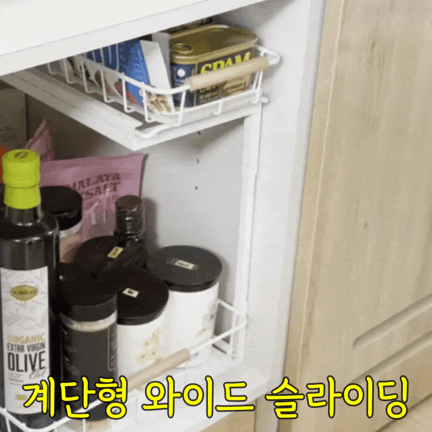 올지 와이드 슬라이딩 주방선반 레일 양념통 싱크대 하부장 정리 선반 철제