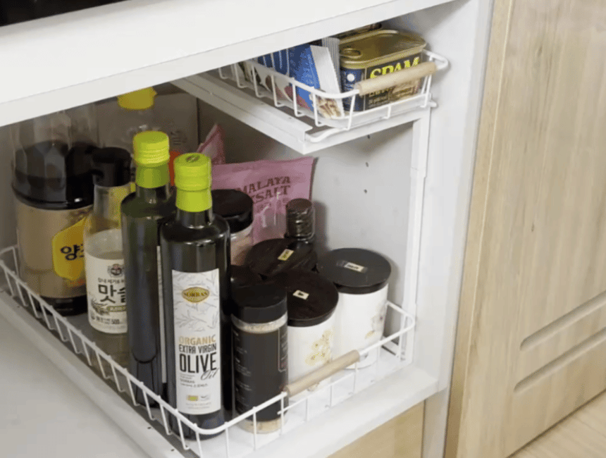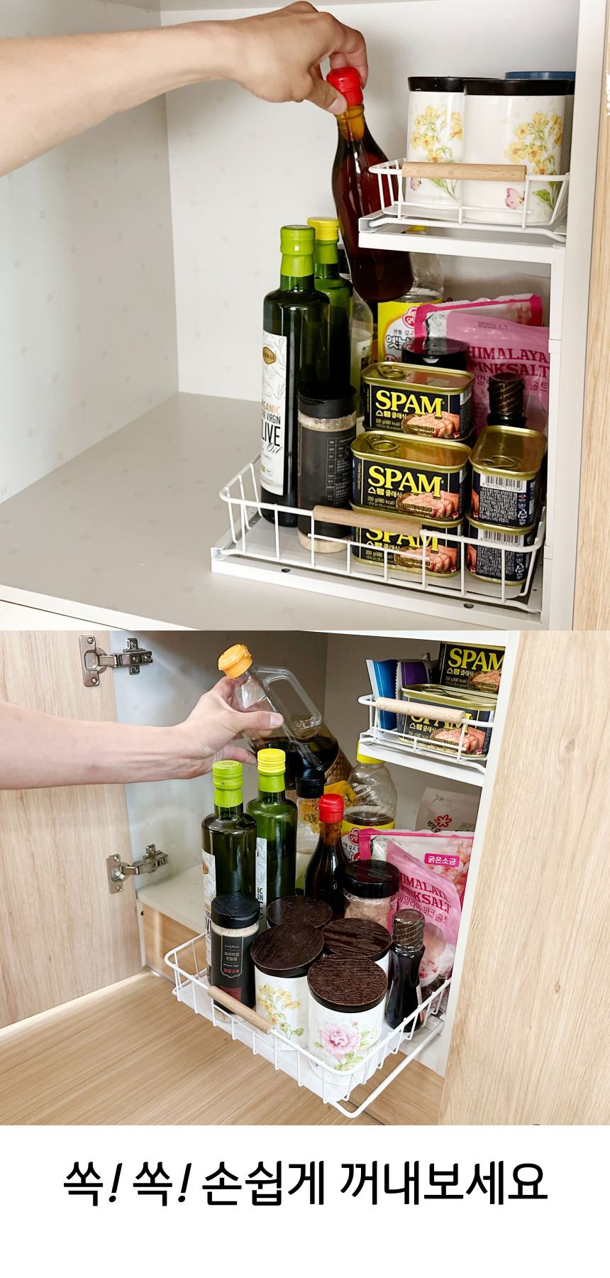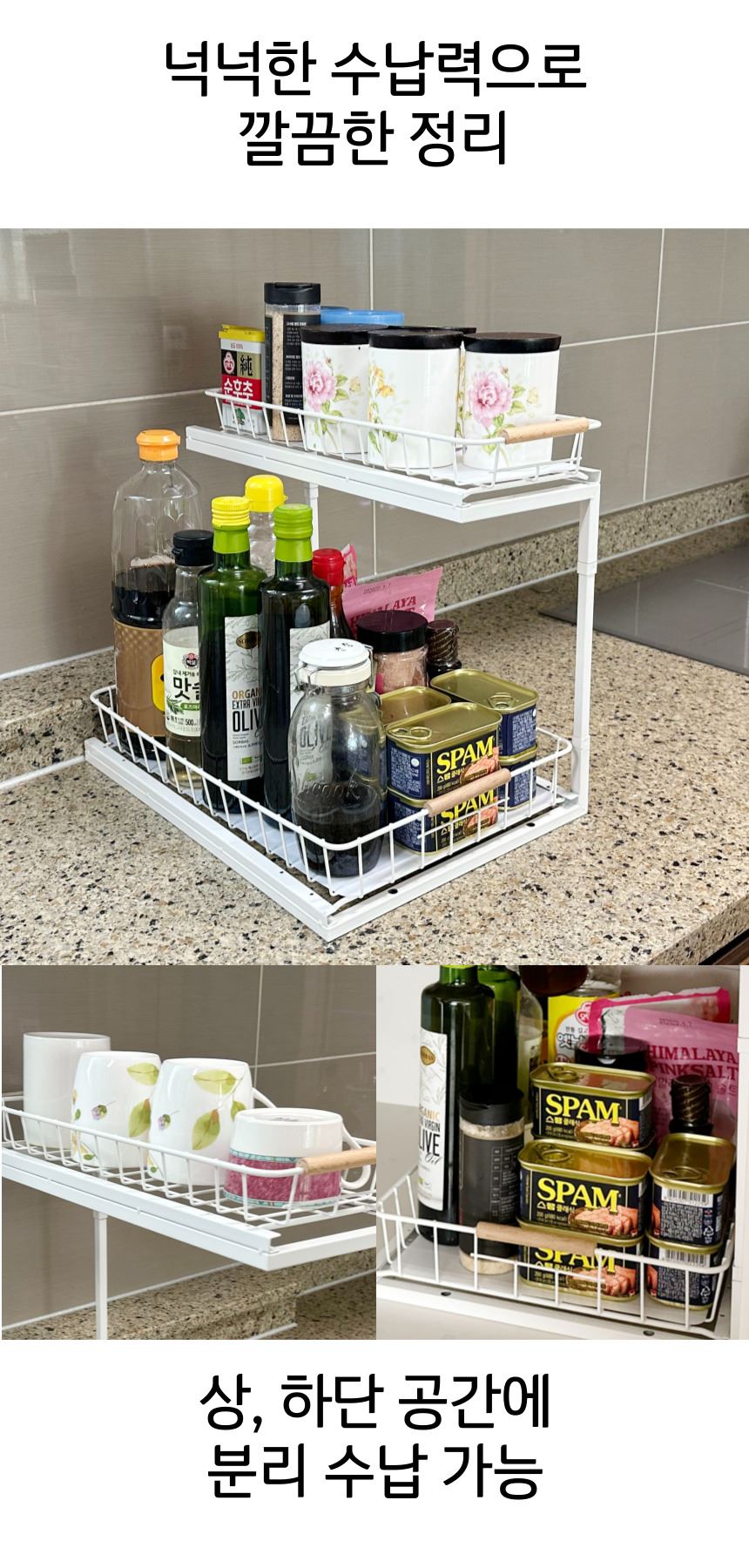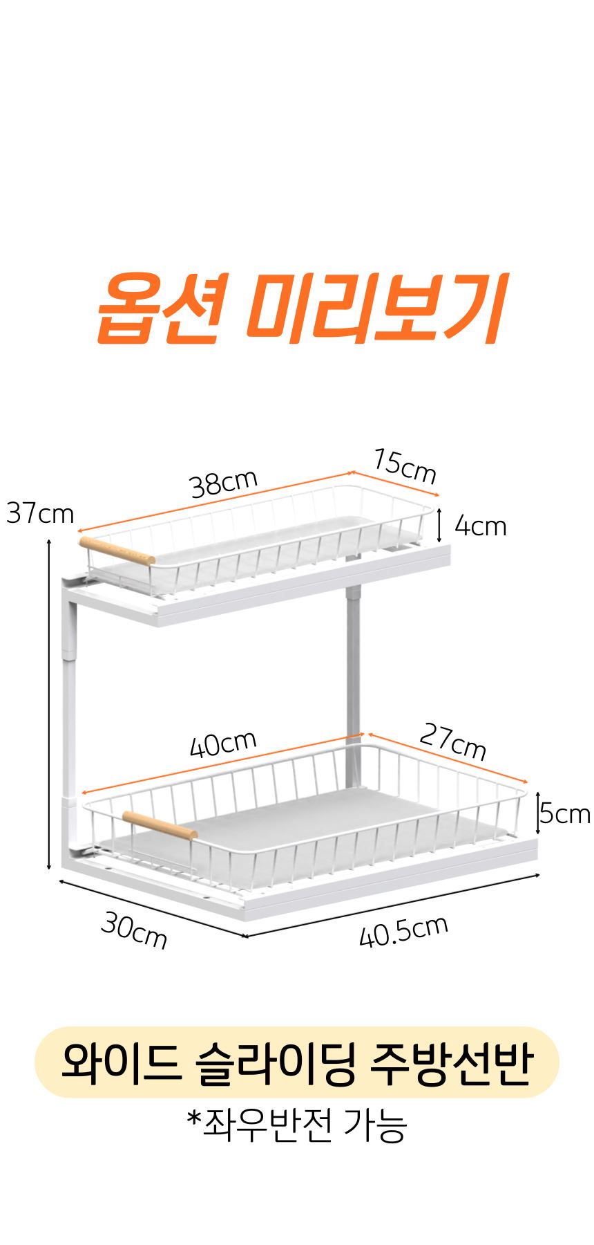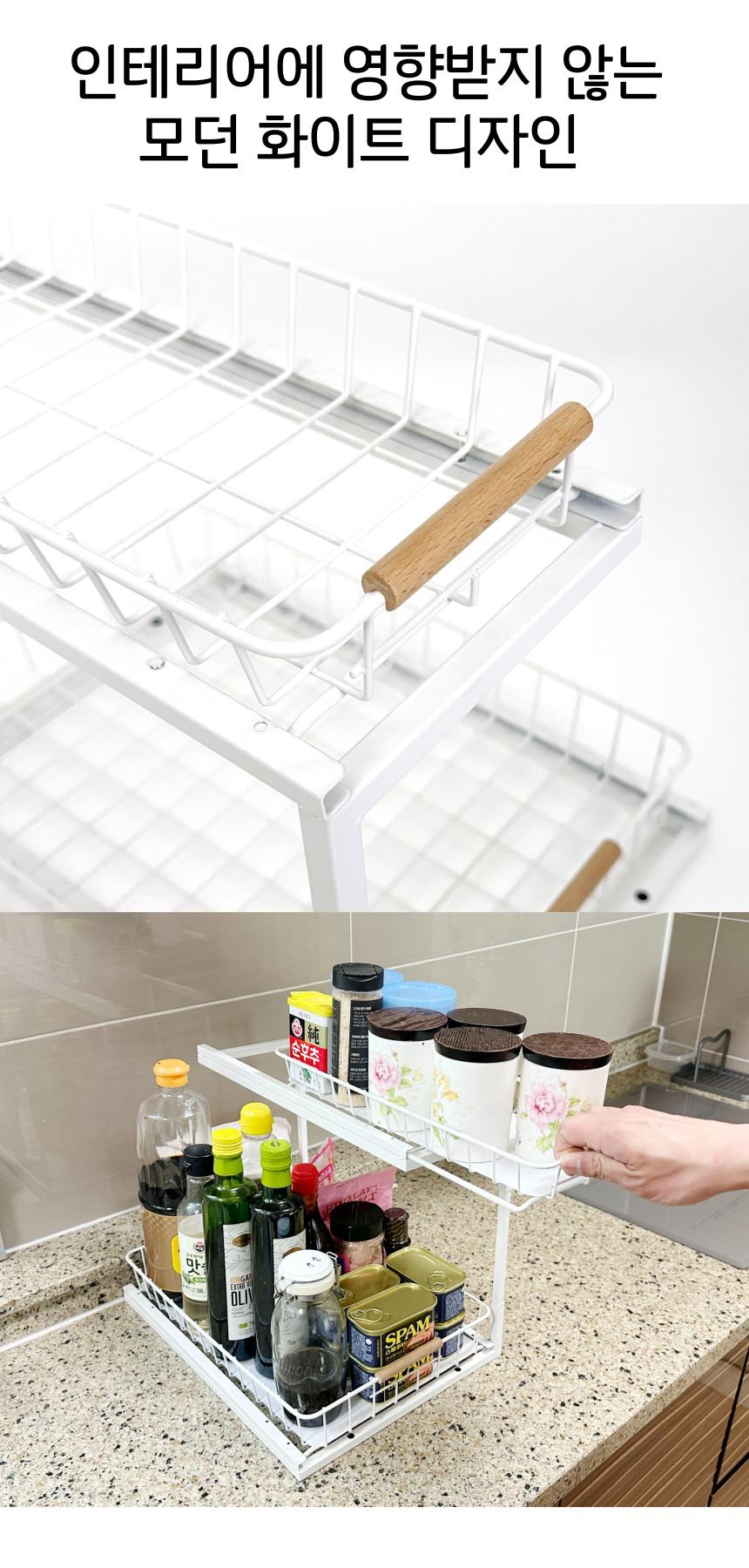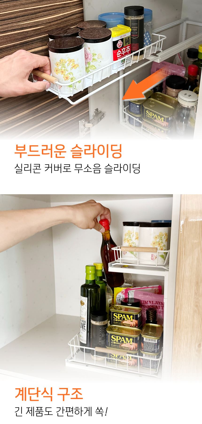 올지 와이드 슬라이딩 주방선반 레일 양념통 싱크대 하부장 정리 선반 철제