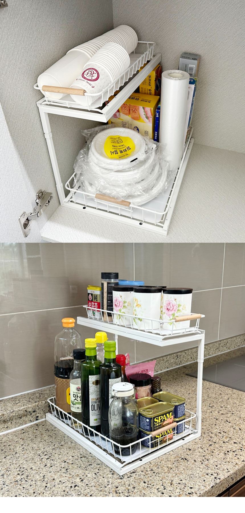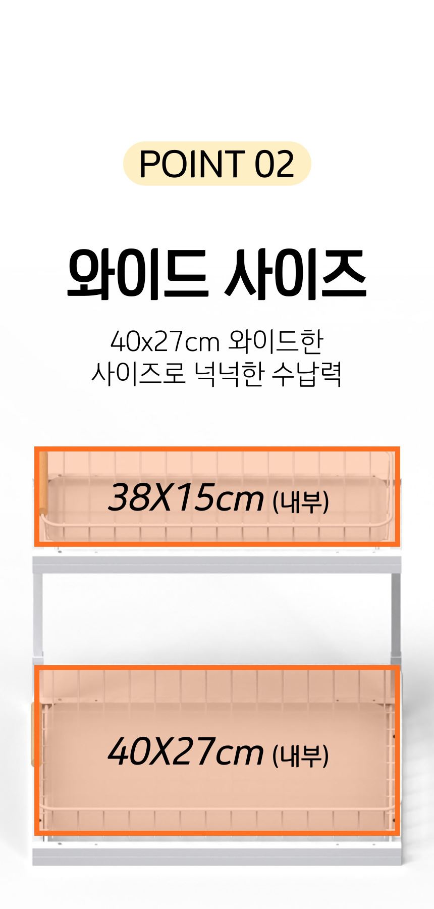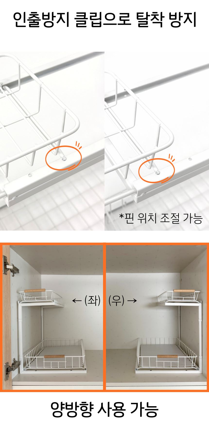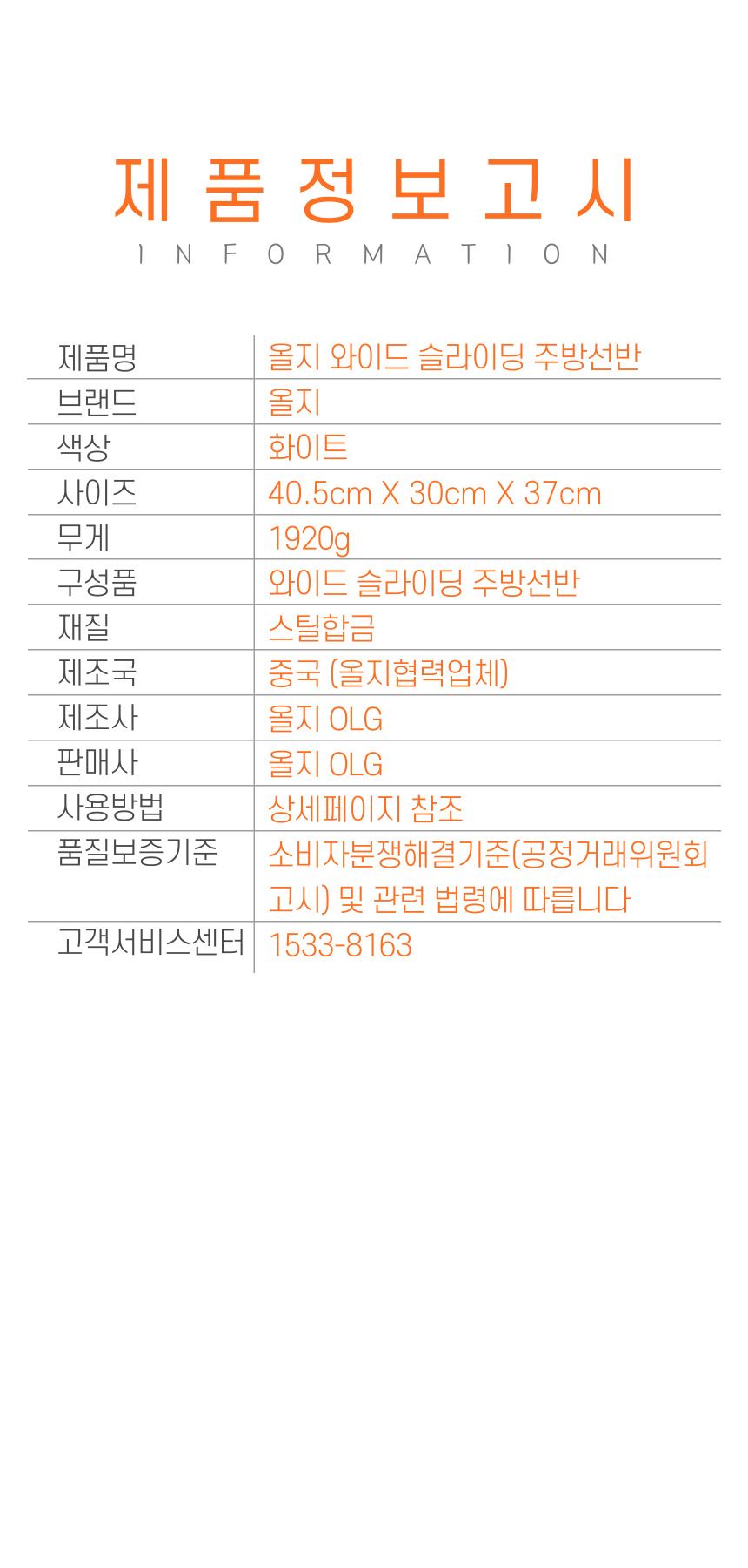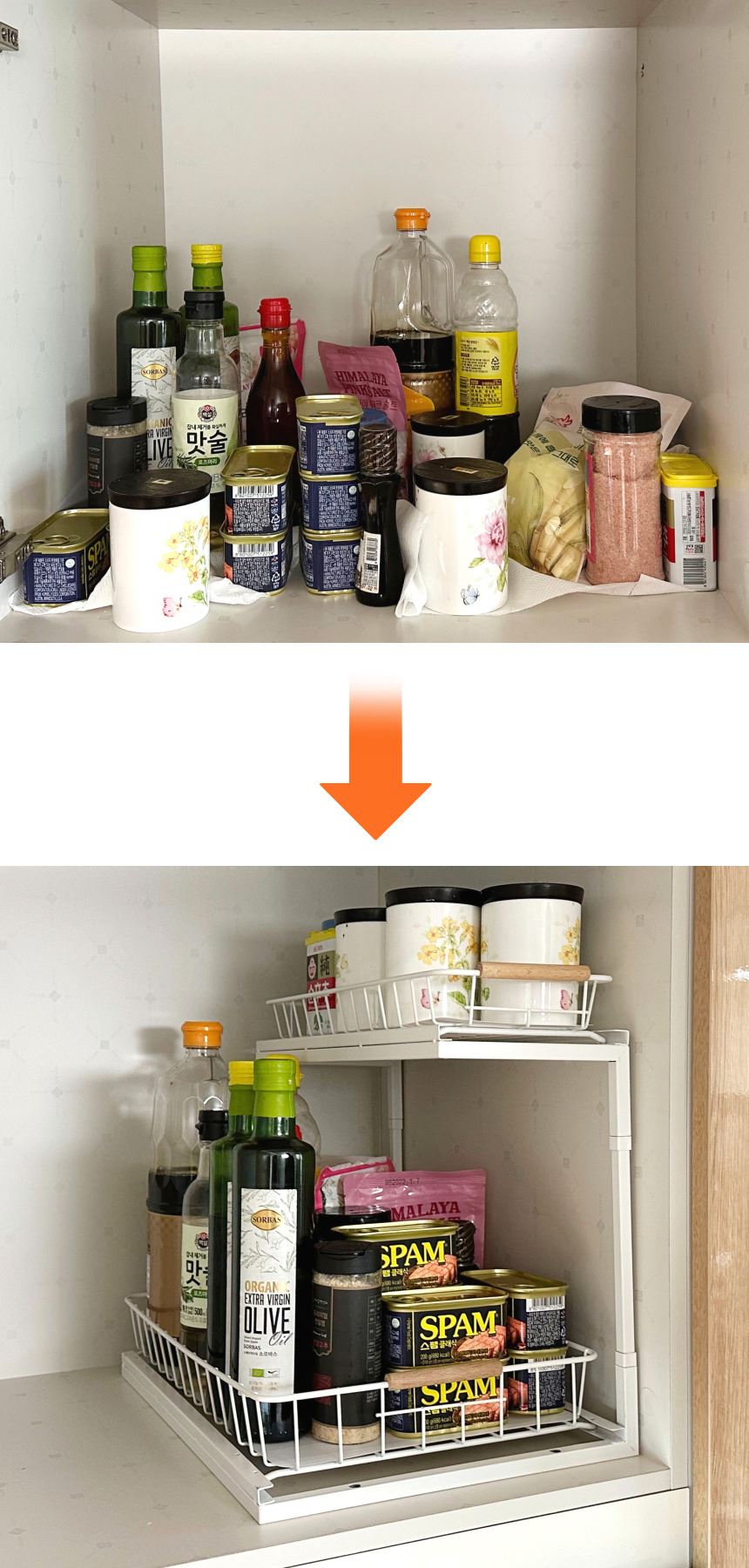 올지 와이드 슬라이딩 주방선반 레일 양념통 싱크대 하부장 정리 선반 철제