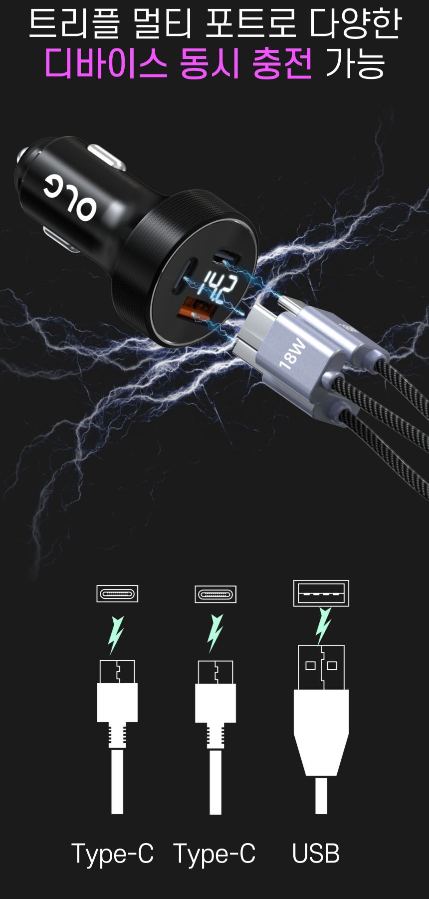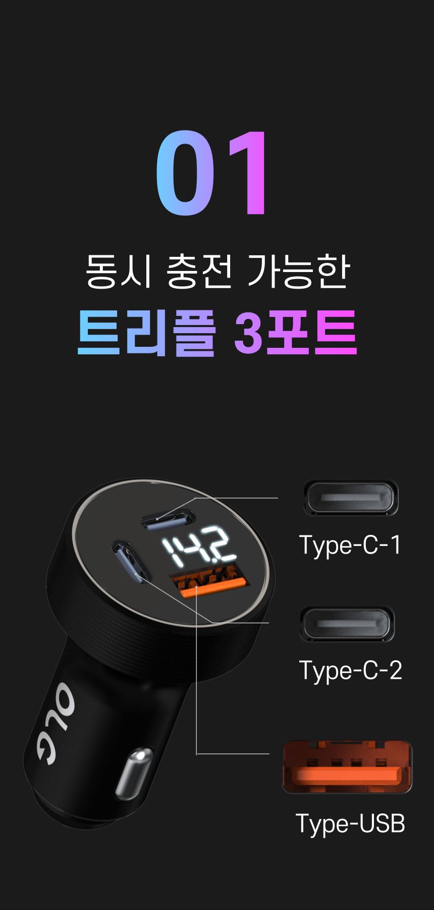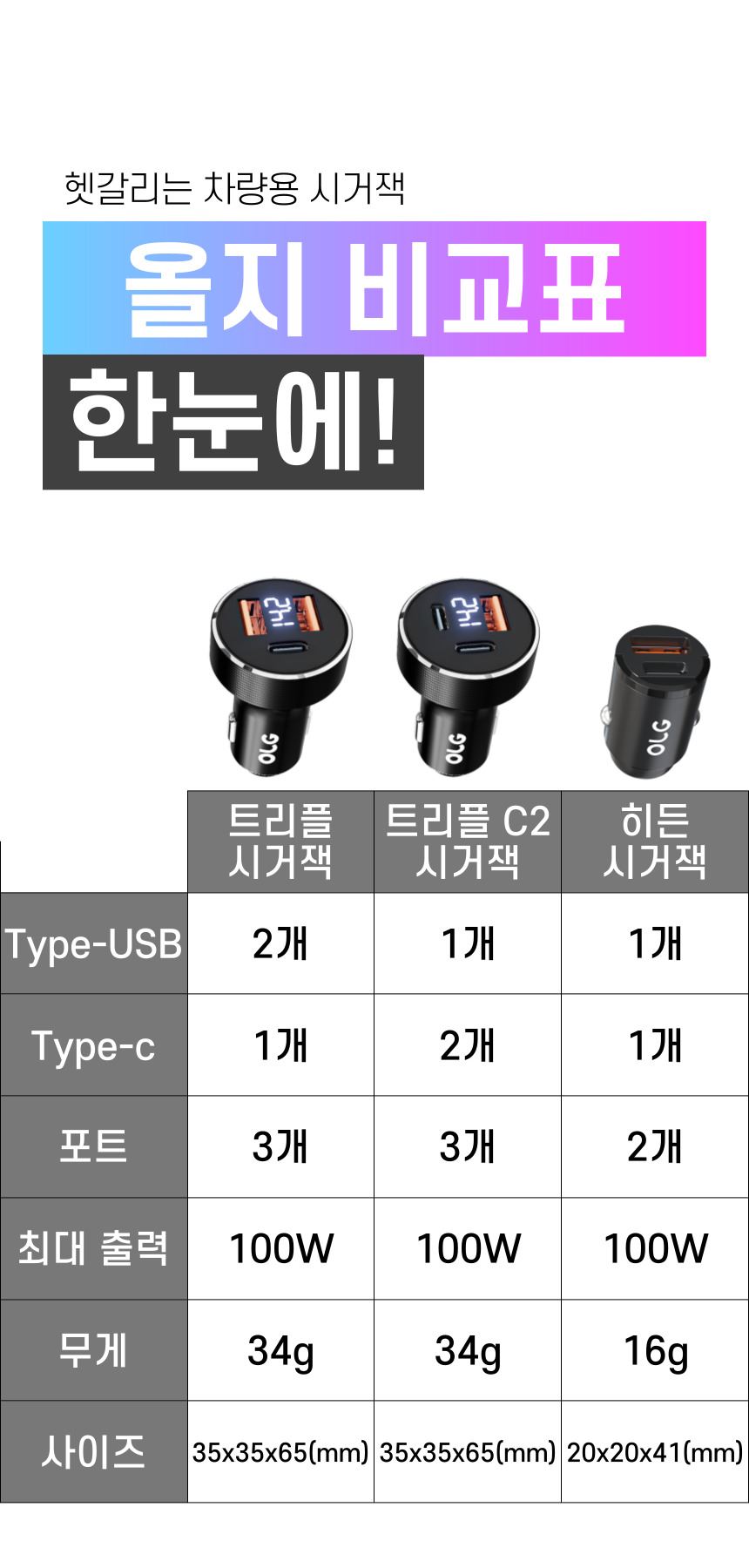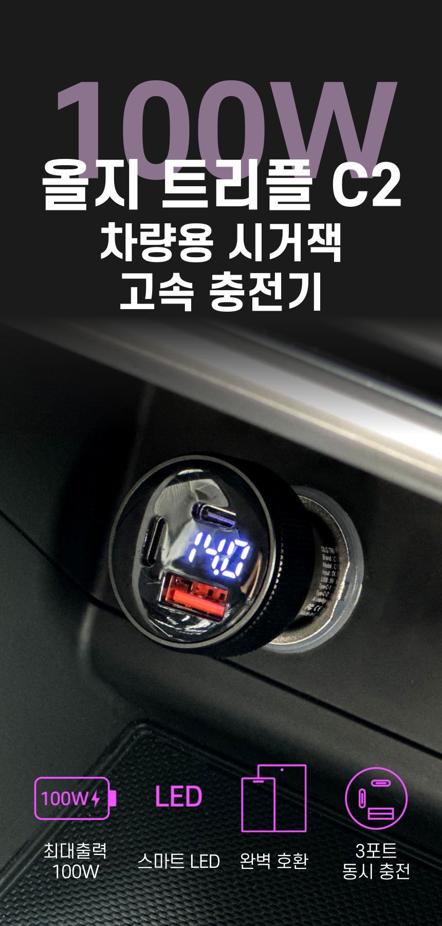 올지 트리플 시거잭 C2 100W 차량용 고속 충전기 3구 시가잭 usb