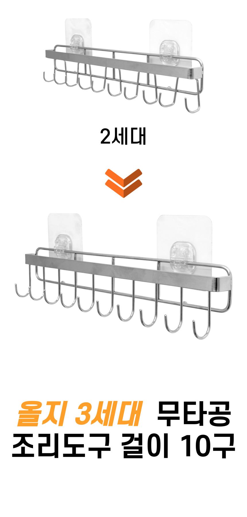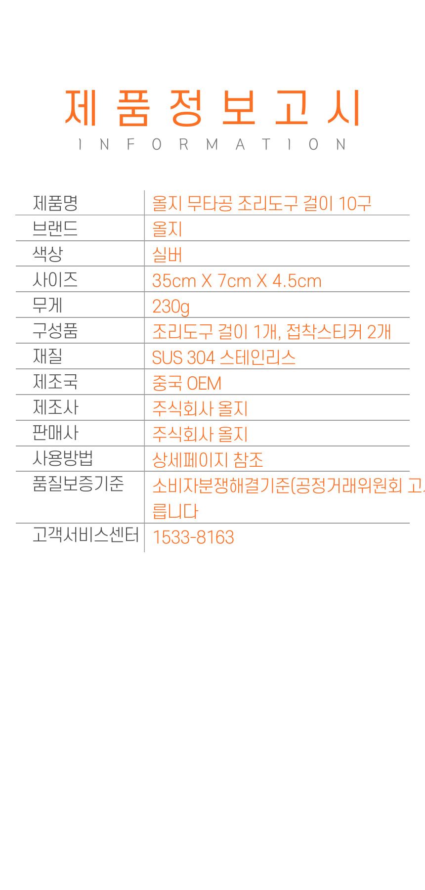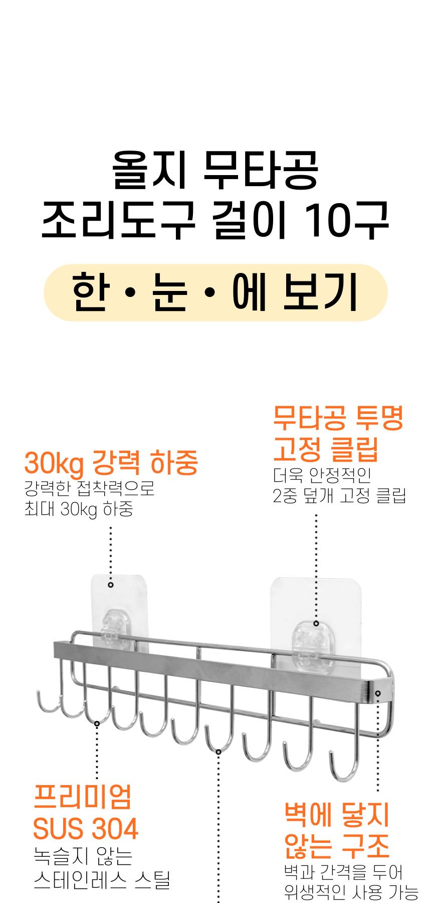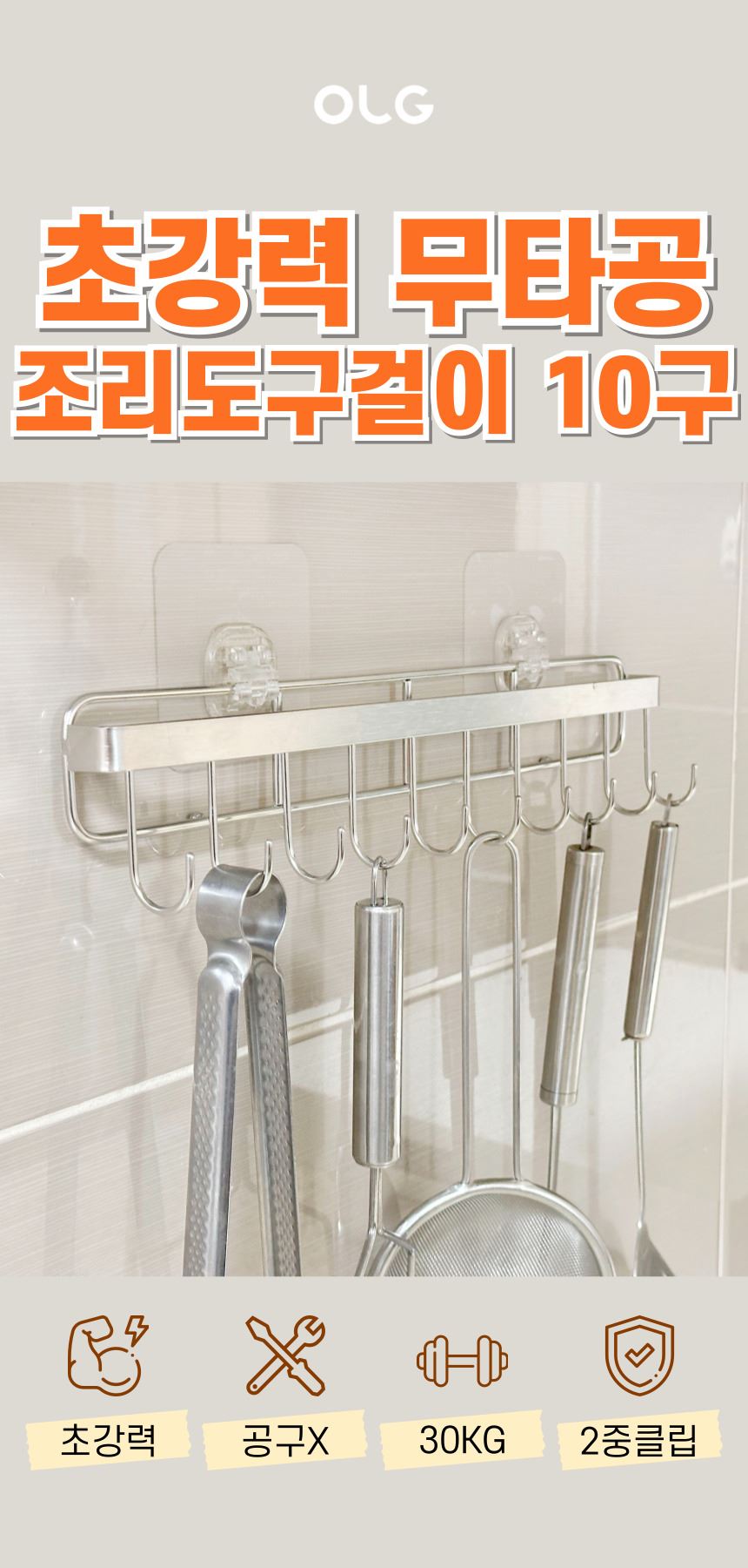 올지 무타공 스텐 조리도구걸이 10구 35cm 스텐304 국자 조리기구 주방