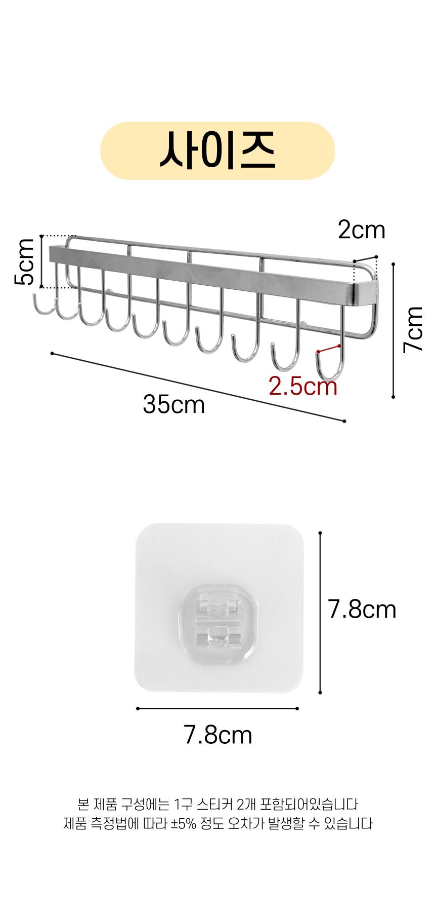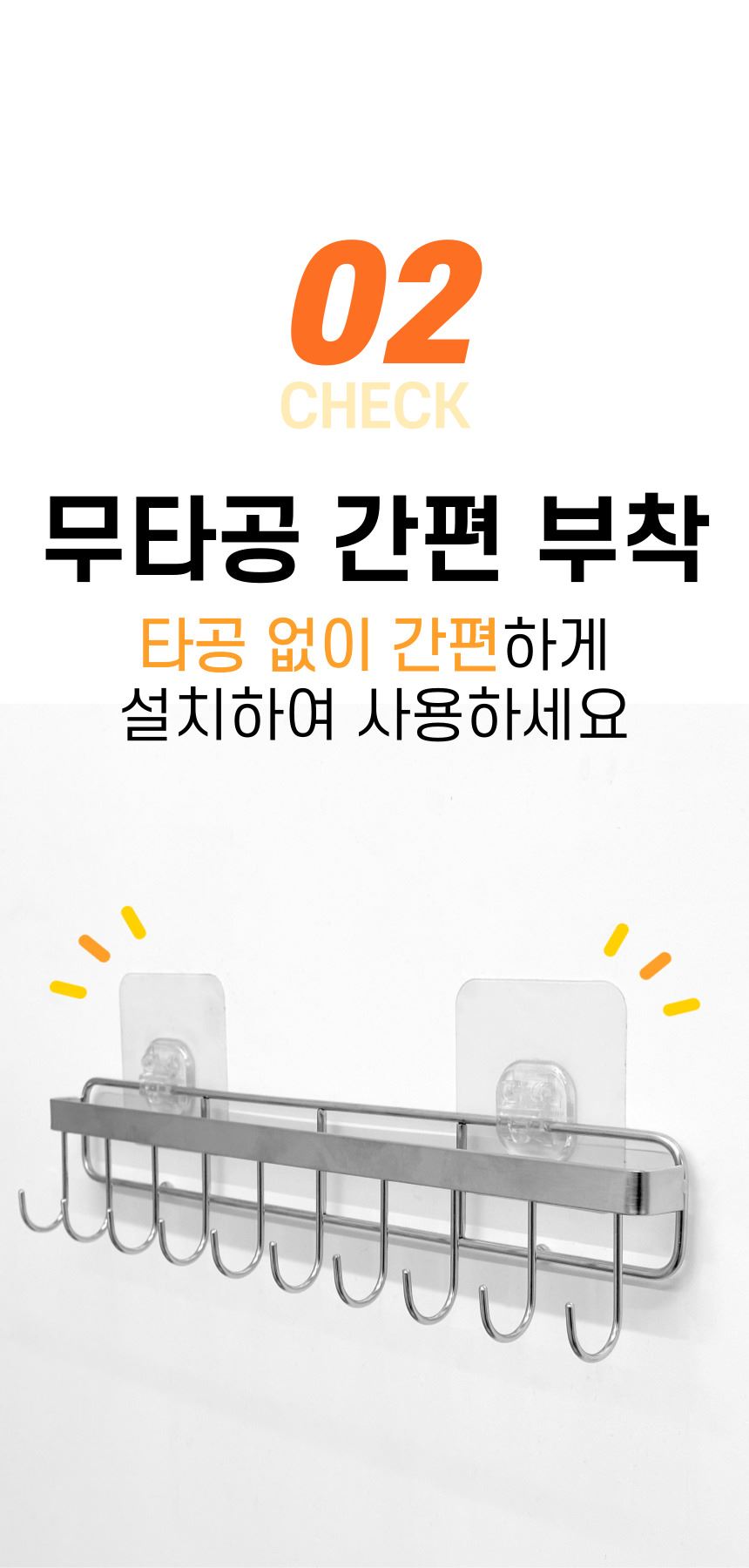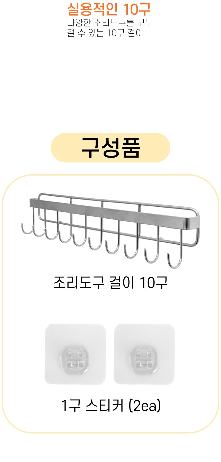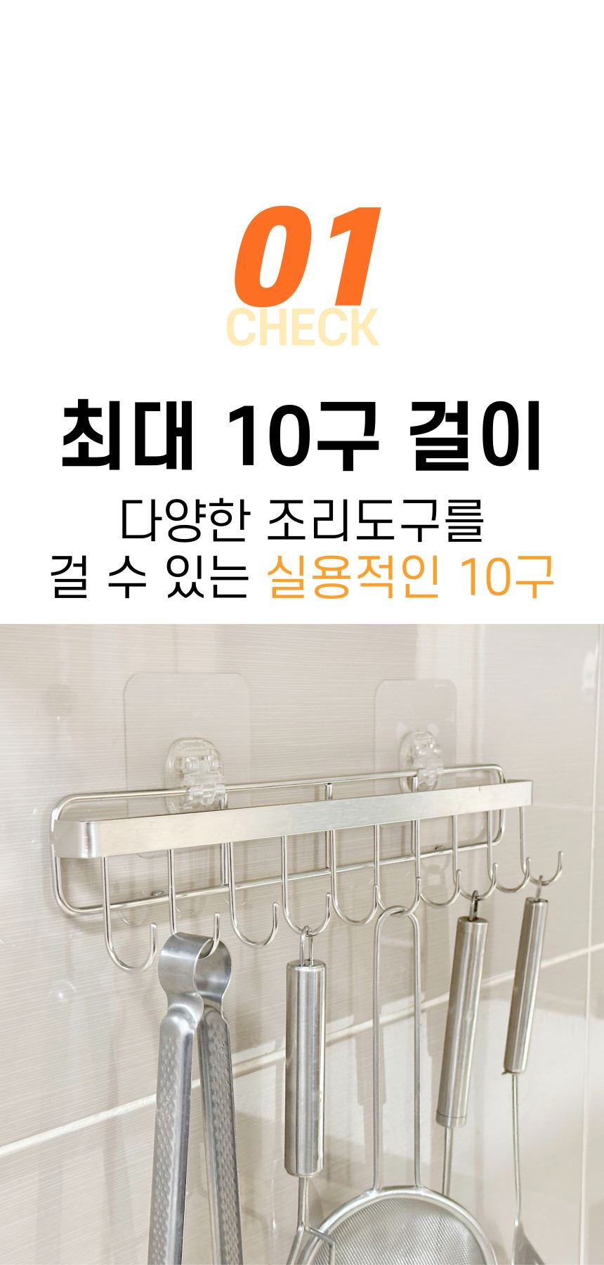 올지 무타공 스텐 조리도구걸이 10구 35cm 스텐304 국자 조리기구 주방