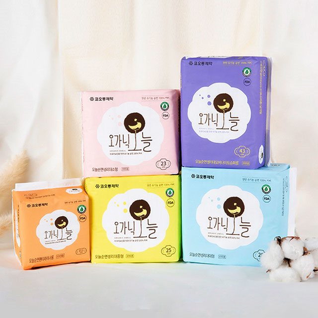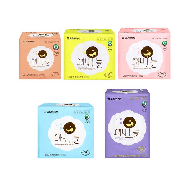 오가닉오늘 5종 세트(소형 + 중형 + 대형 + 슈퍼롱 오버나이트 + 팬티라이너롱 각 1pack) 순면생리대