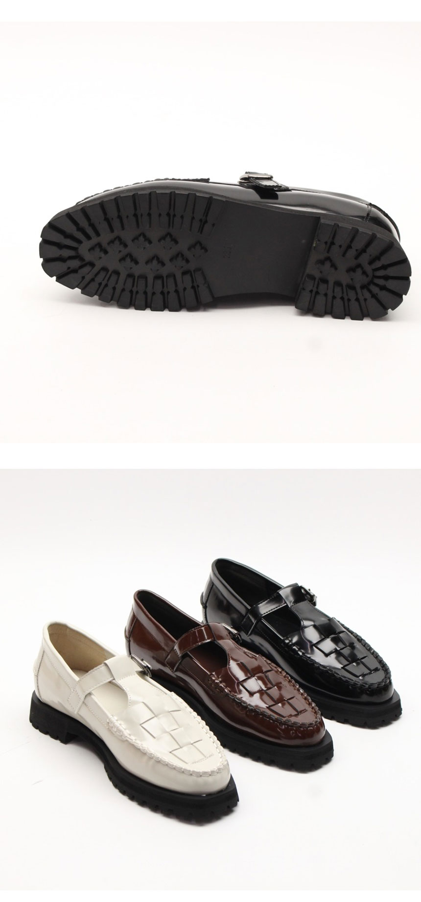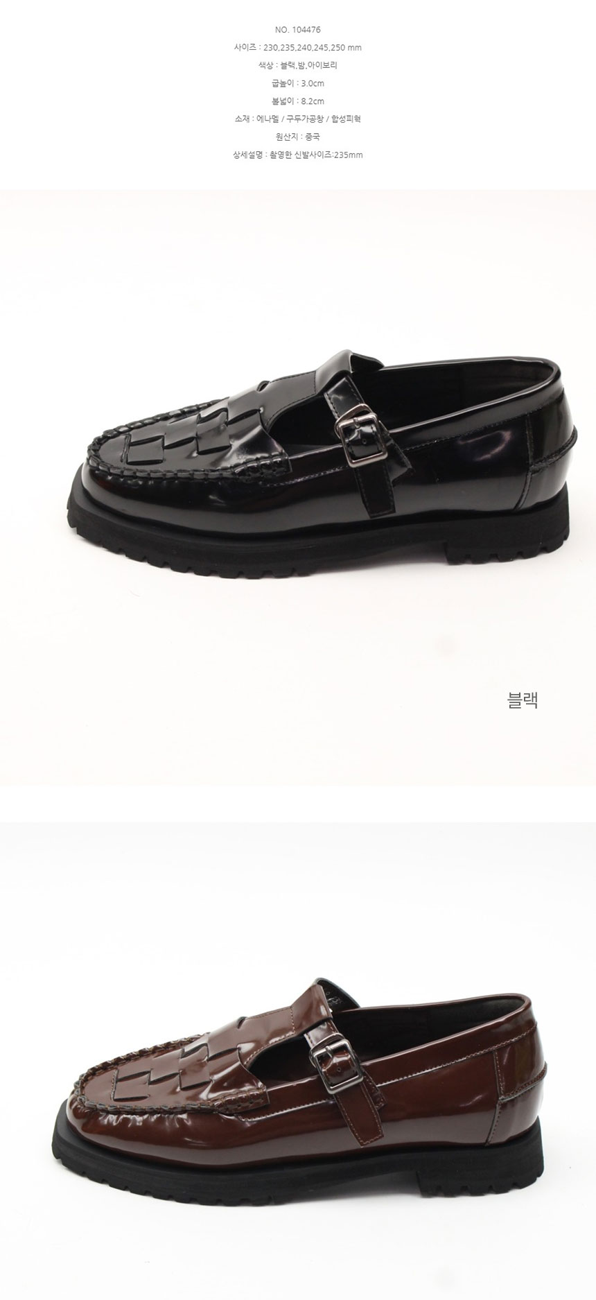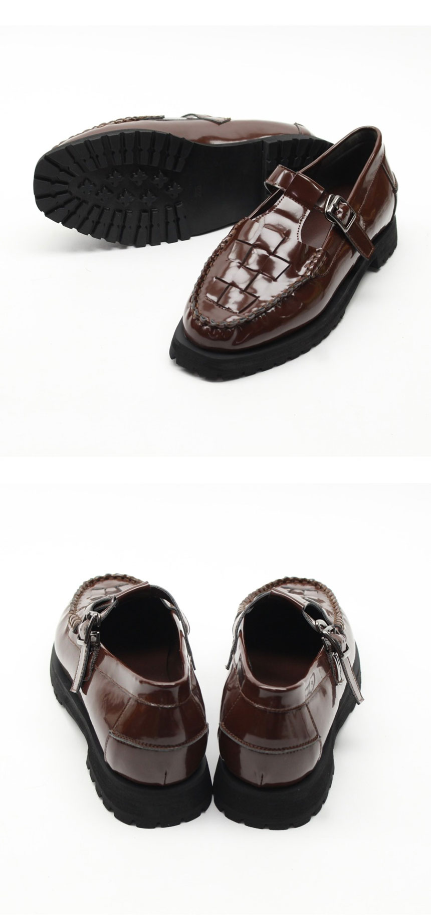 에나멜 위빙 스트랩 메리제인 로퍼 단화