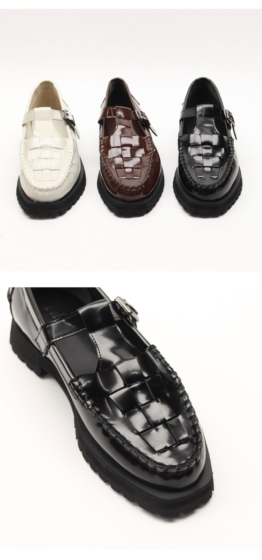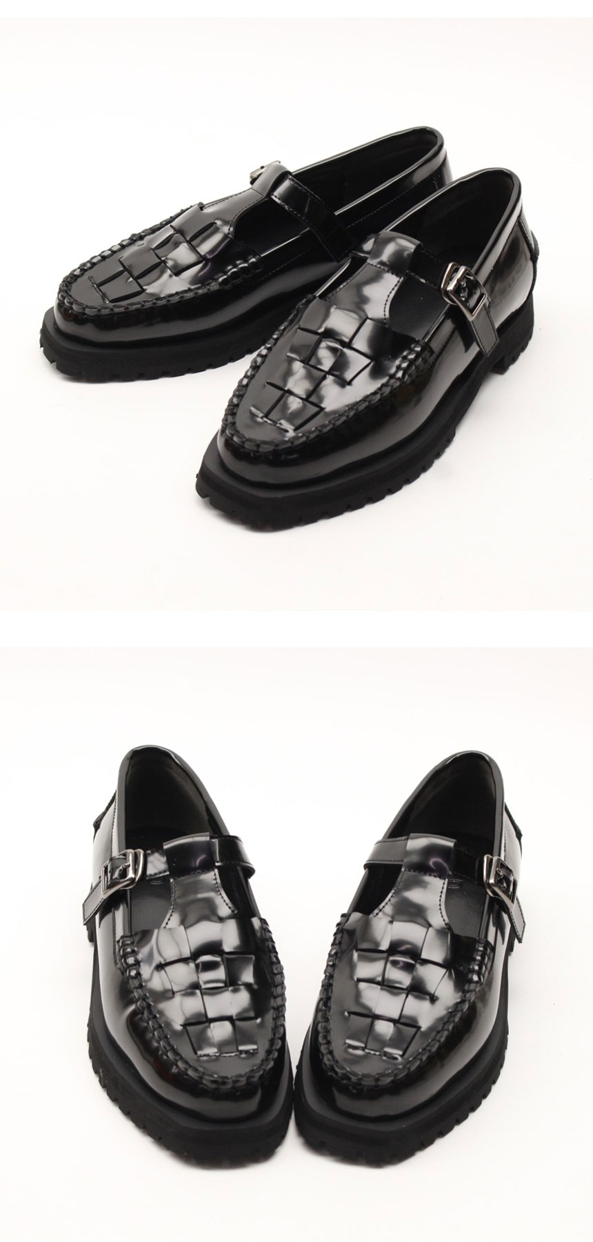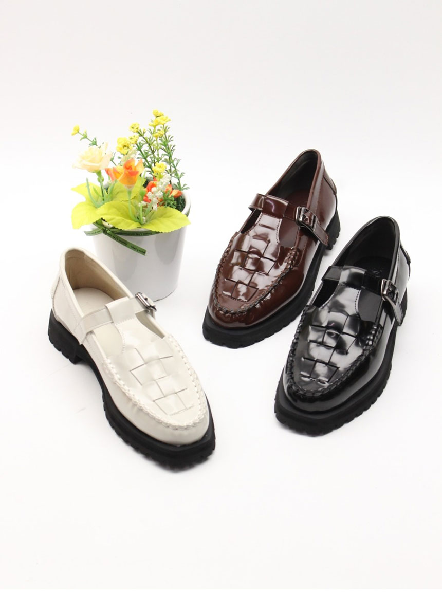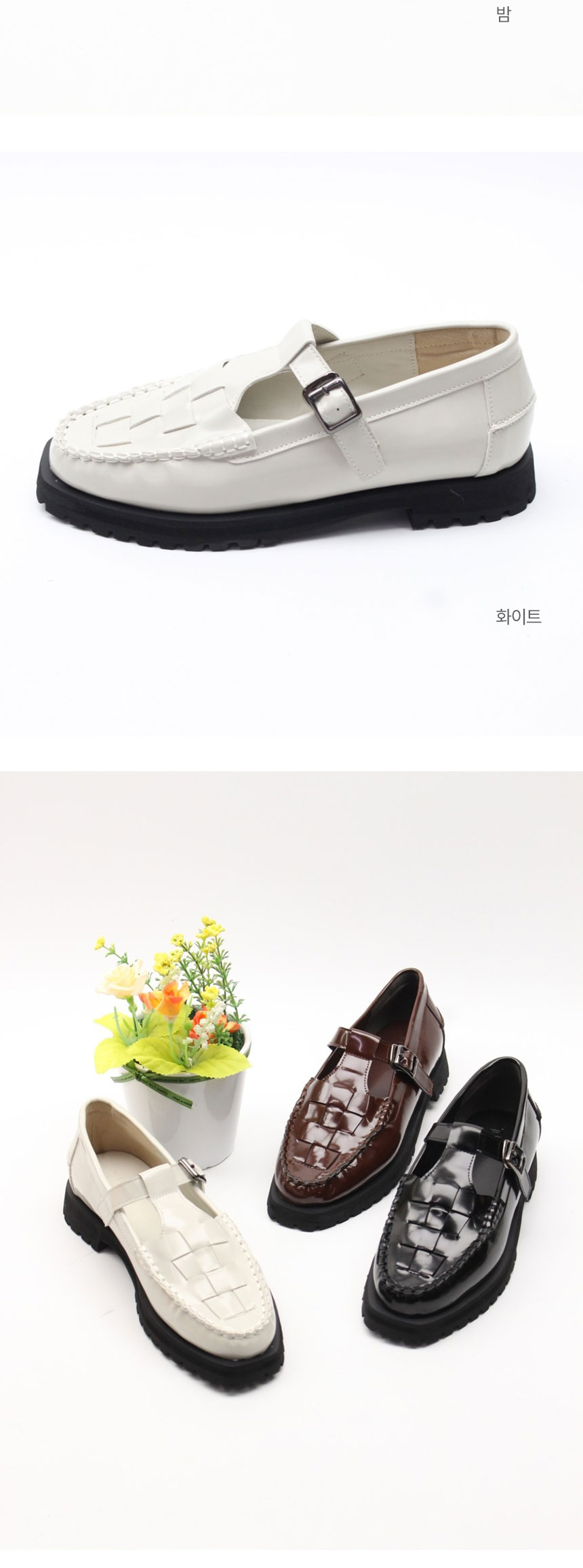 에나멜 위빙 스트랩 메리제인 로퍼 단화